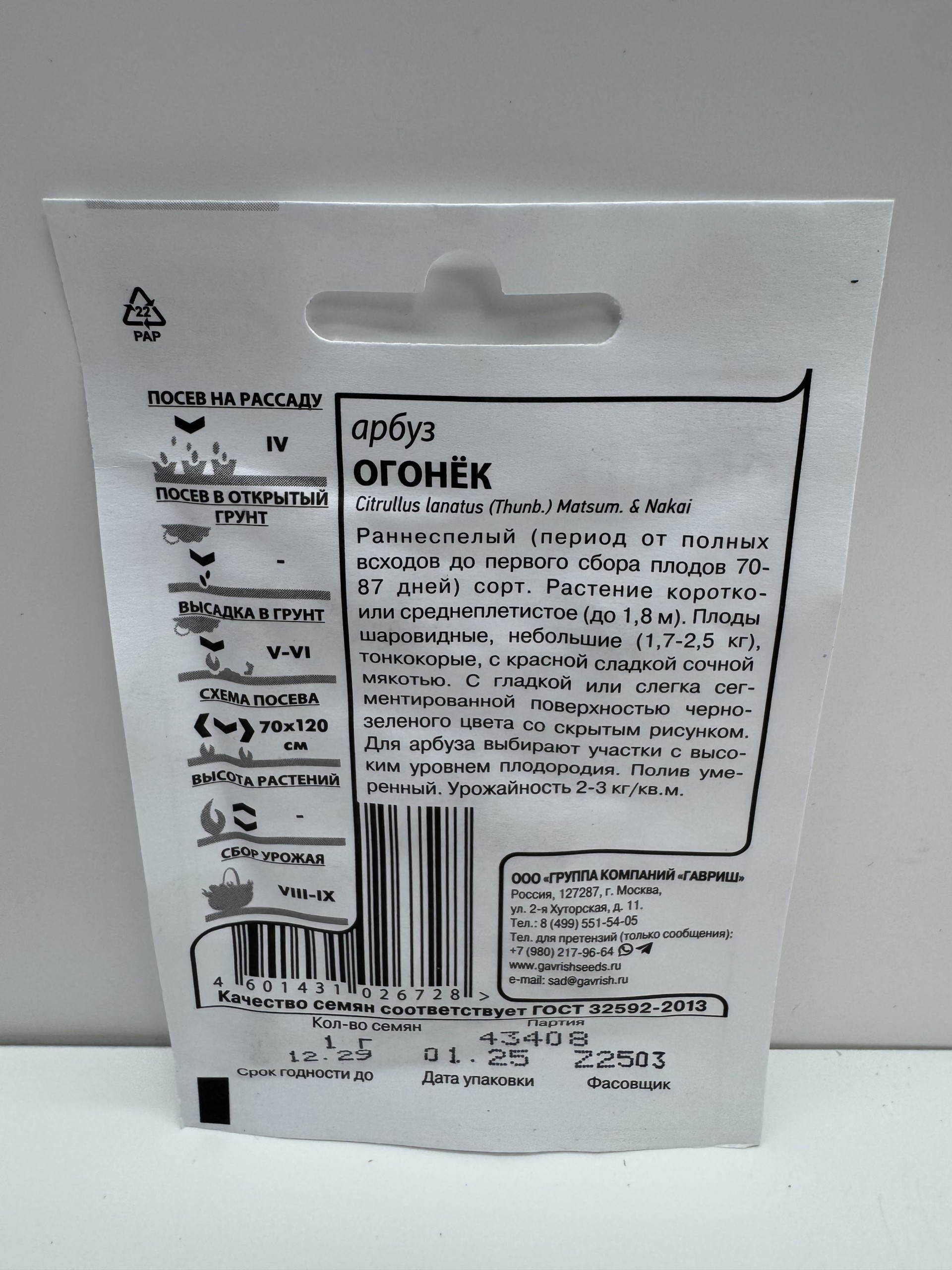 Главная Семена АРБУЗЫ Арбуз Огонек б/п (Гавриш) 1г