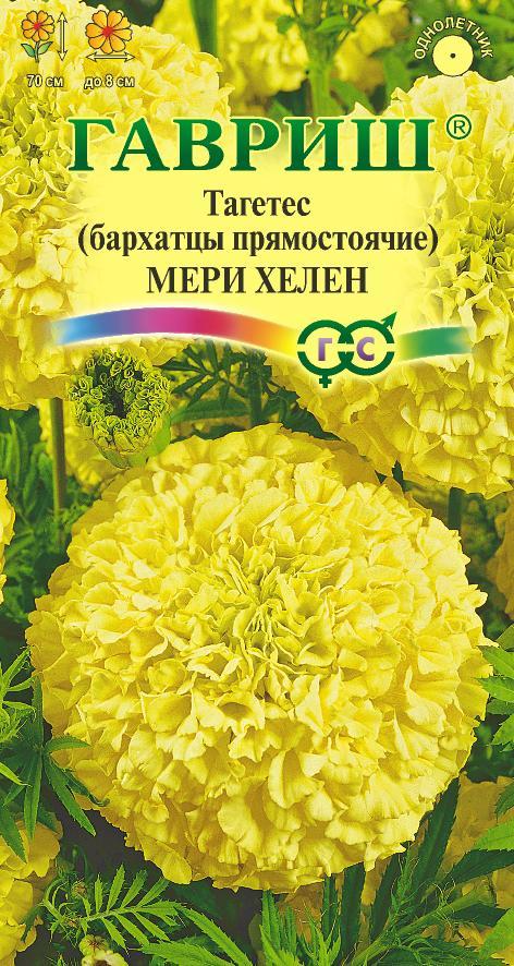 Одно из самых распространенных однолетних растений семейства Астровые. Образует куст высотой 70 см с ясно выраженным главным побегом. Соцветия густомахровые, лимонно-желтого цвета, 8 см в диаметре. Цветет с июня до заморозков. Бархатцы светолюбивы и теплолюбивы, заморозков не переносят, к почвам нетребовательны, но предпочитают плодородные легкие почвы. Посев на рассаду проводят во второй половине марте-начале апреля. Всходы появляются через 4-8 дней после посева, сеянцы пикируют в фазе 2-го настоящего листа. Рассаду высаживают в начале июня с расстоянием между растениями 30-35 см. Посев в открытый грунт проводят в мае на глубину 1,5-2 см.