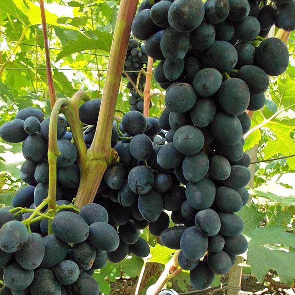 Виноград Черная вишня — ранний сорт. Куст сильнорослый. Цветки обоеполые, распускаются в первых числах июня. Гроздья большие, длинные, рыхлые или средне рыхлые. Ягоды крупные, овальные или яйцевидные. Мякоть мясистая, плотная, сочная, очень сладкая, с приятным легким вкусом переспевшей вишни, или шелковично-черешневым вкусом, кислинки практически нет. Кожица при еде не ощущается.