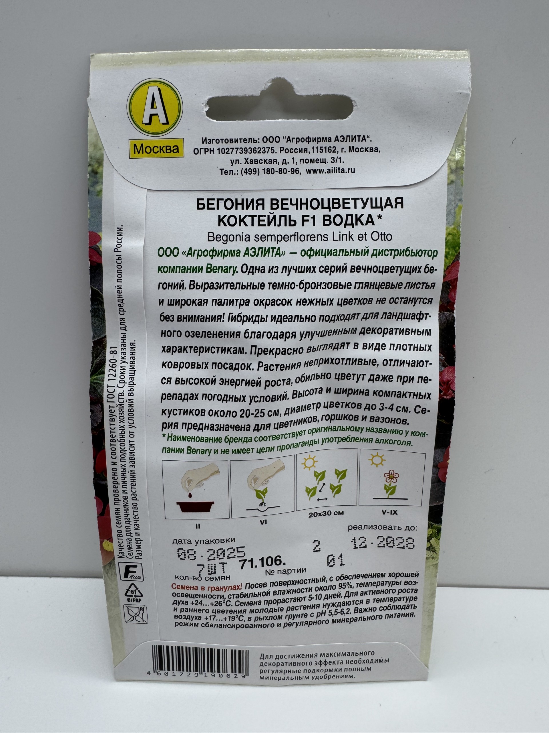 Цв.Бегония Коктейль водка F1 (Аэлита) 7шт