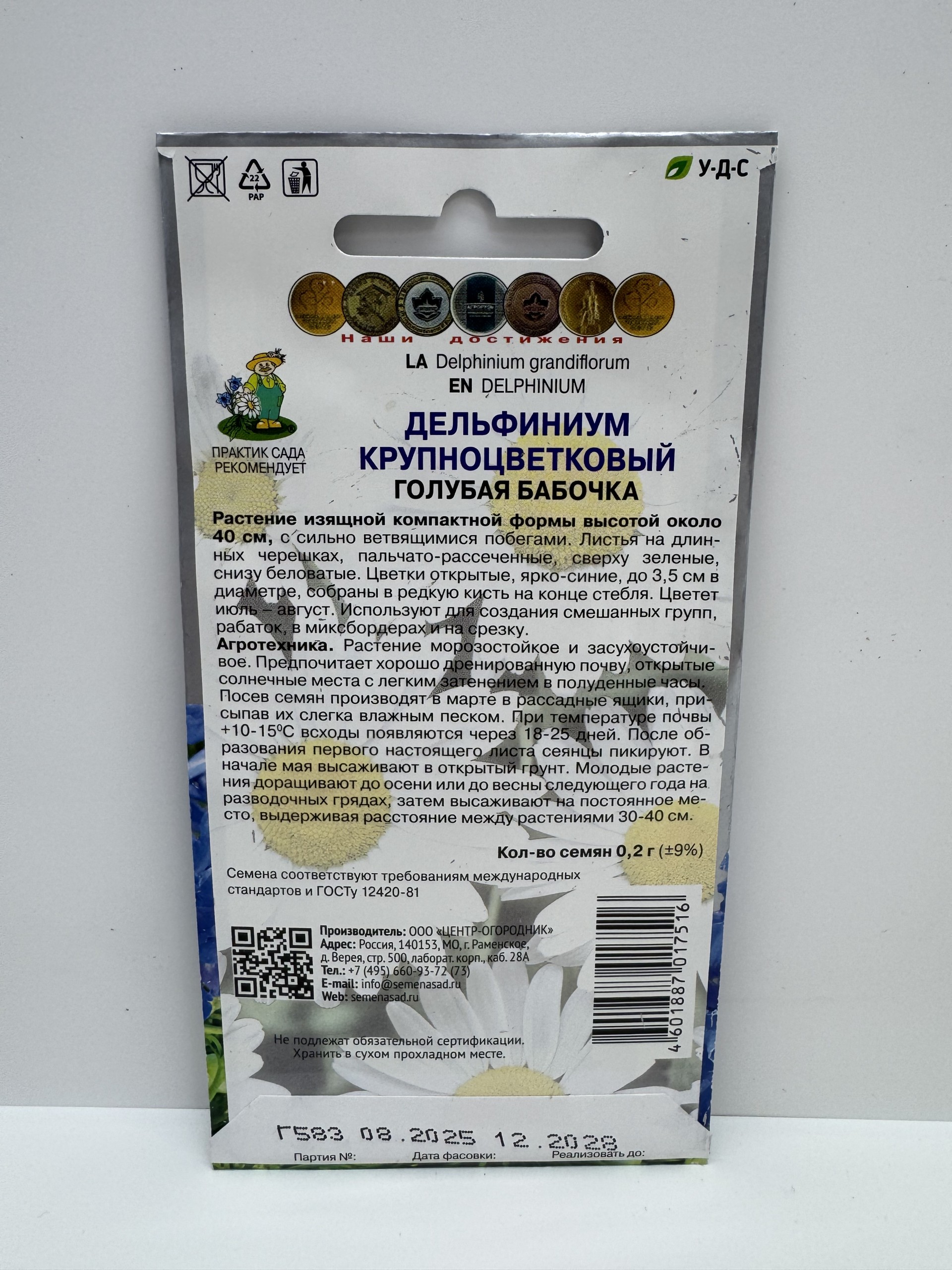 Главная Семена ЦВЕТЫ Цв.Дельфиниум Голубая бабочка (Поиск) 0,2г
