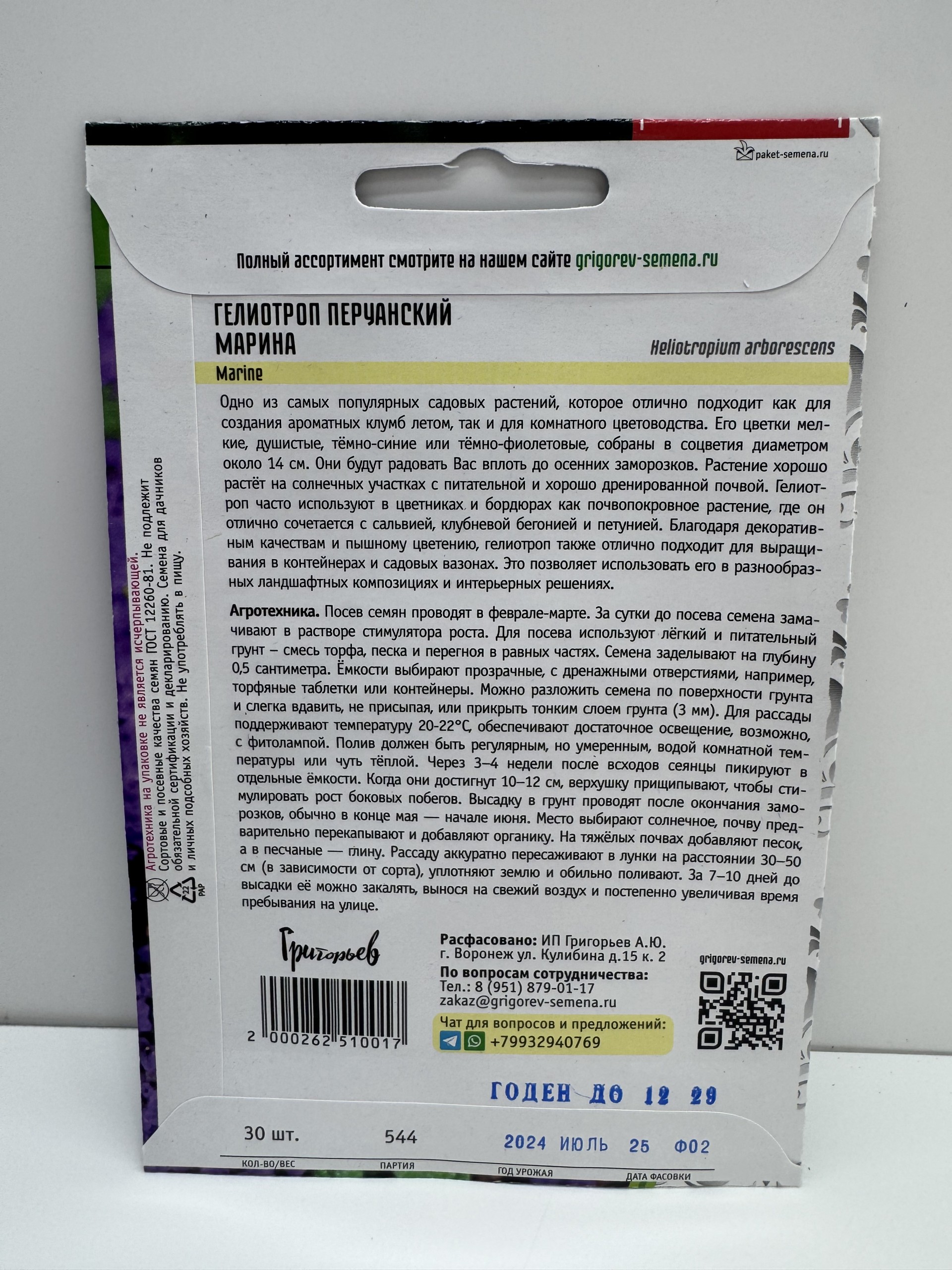 Главная Семена ЦВЕТЫ Цв.Гелиотроп Марина (Григорьев)