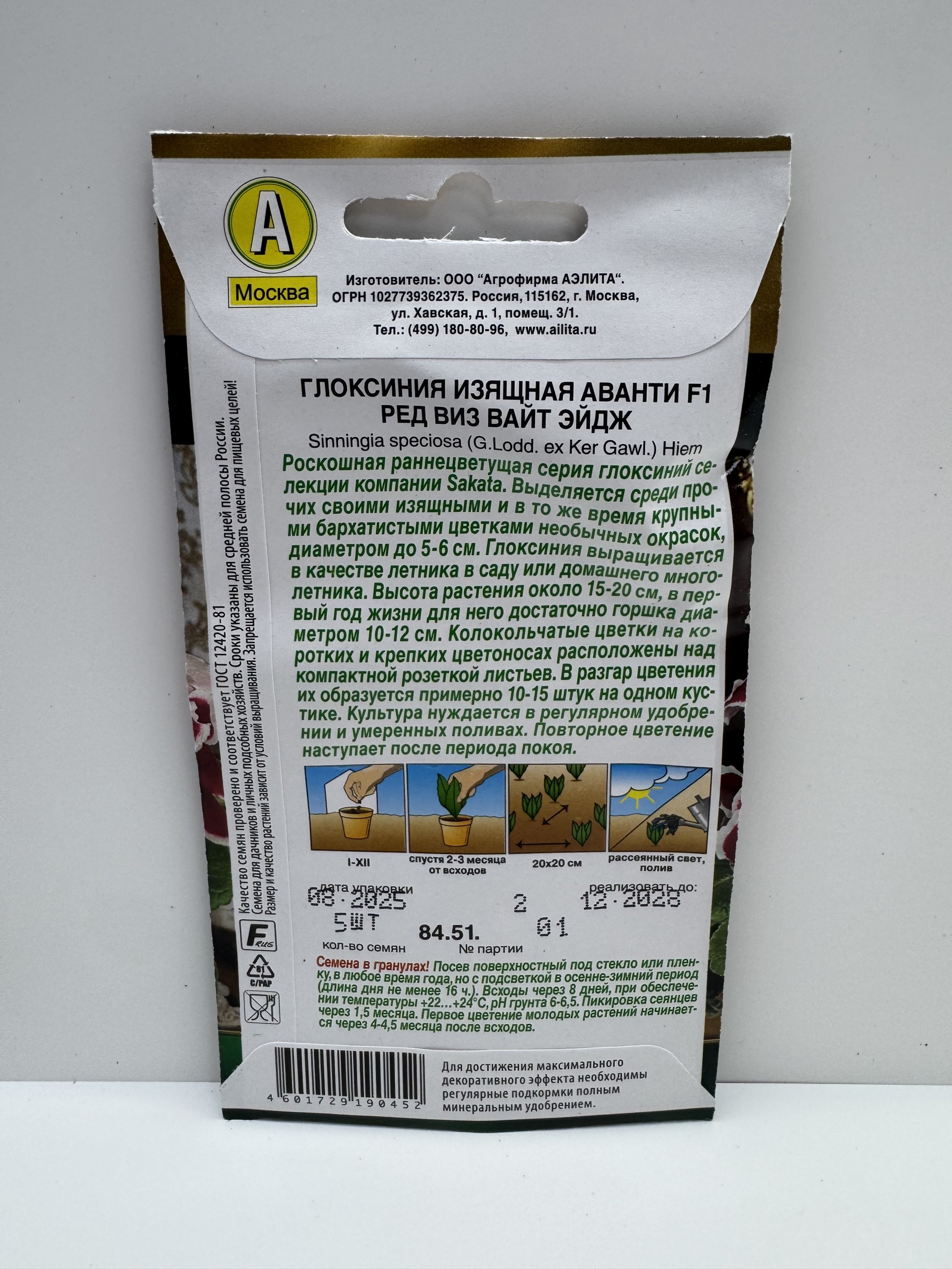 Главная Семена ЦВЕТЫ Цв.Глоксиния Аванти ред виз вайт эйдж F1 (Аэлита) 5шт