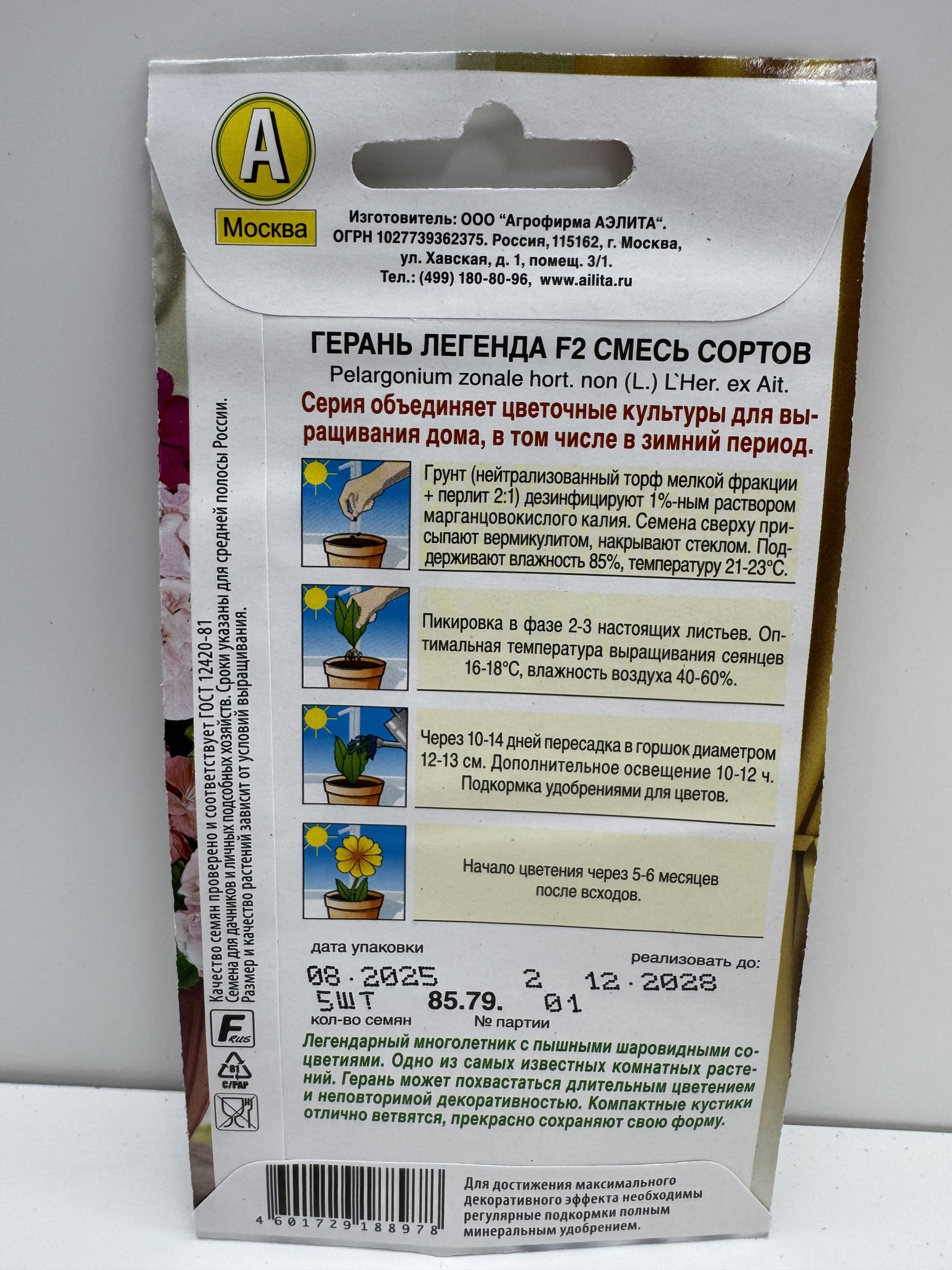 Главная Семена ЦВЕТЫ Цв.Пеларгония Легенда смесь F2 (Аэлита) 5шт