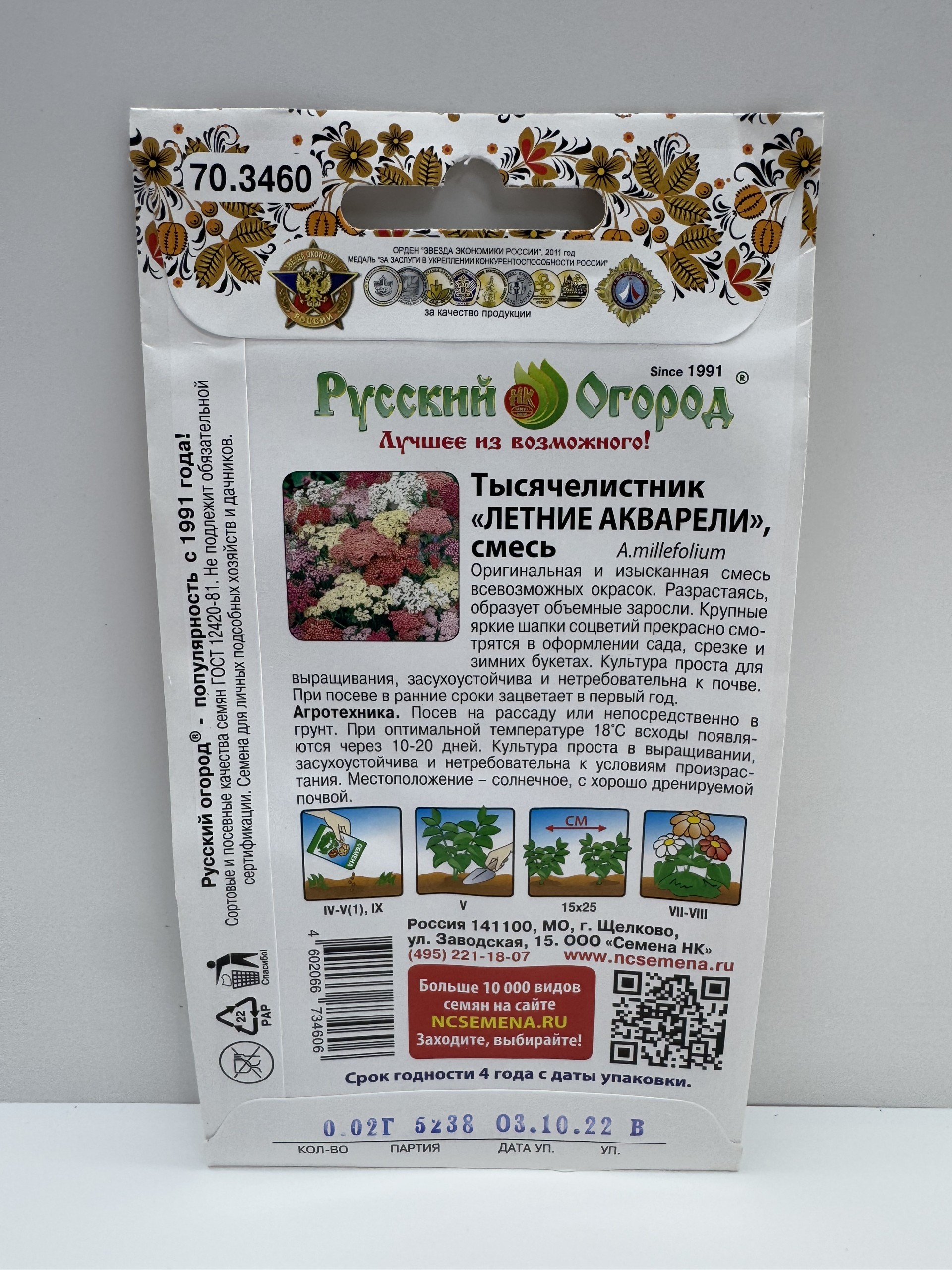 Главная Семена 40% до 12.2026 года Цветы Цв.Тысячелистник Летний Акварель (НК) 12,26