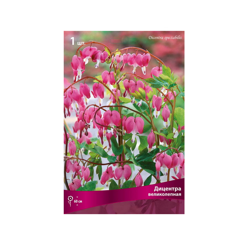 Дицентра– изящное многолетнее корневищное растение до 100 см высотой с сильно разрезными перисто-сложными листьями, зелеными, с сизым оттенком. Цветки розовые, беловатые или красноватые, повисающие сплюснутые. По форме напоминают сердце, а двойная шпора на лепестках как бы пронзает его стрелой, отсюда и название – разбитое сердце. Собраны в однобокие соцветия – кисти.