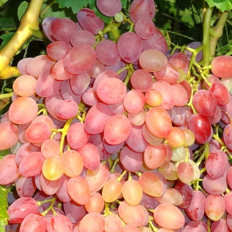 НОВИНКА!!!! !Столовая форма винограда относится к сортам очень раннего срока созревания (от 105-ти до 115-ти дней). Плоды крупные, отличаются длительным сроком хранения. Кусты среднерослые, скелет мощный. Кисти крупные, средний вес колеблется от 700-т г. до 800 гр., форма кистей цилиндpическая. Средний вес плодов до 10 г., ягоды сосковидной формы. Цвет прозрачно белый, полностью вызревшие ягоды приобретают янтарный оттенок. Плотность мякоти средняя. Вкус гармоничный, семена мягкие и их мало. Сахаристость высокая. Морозостойкость высокая.