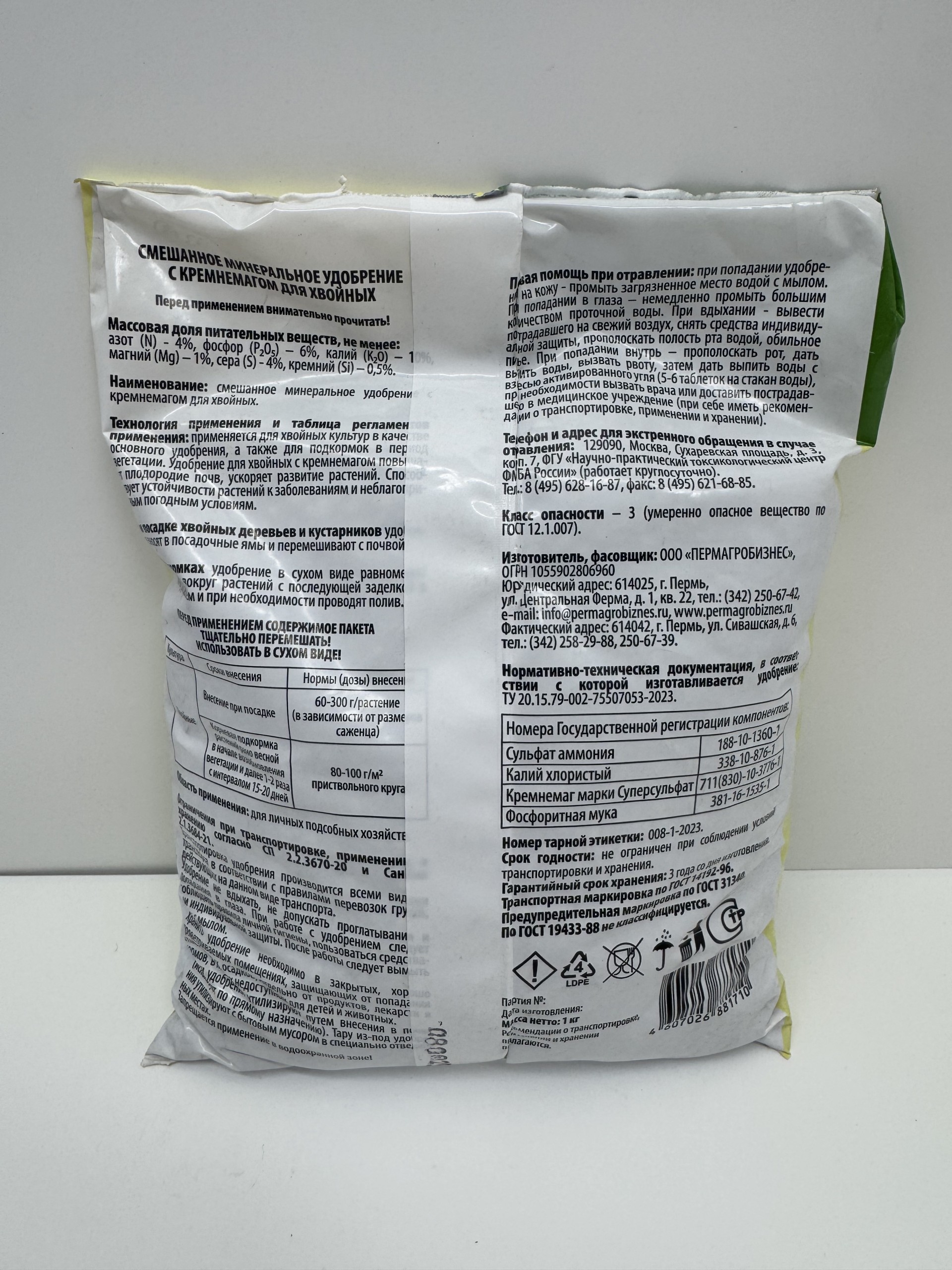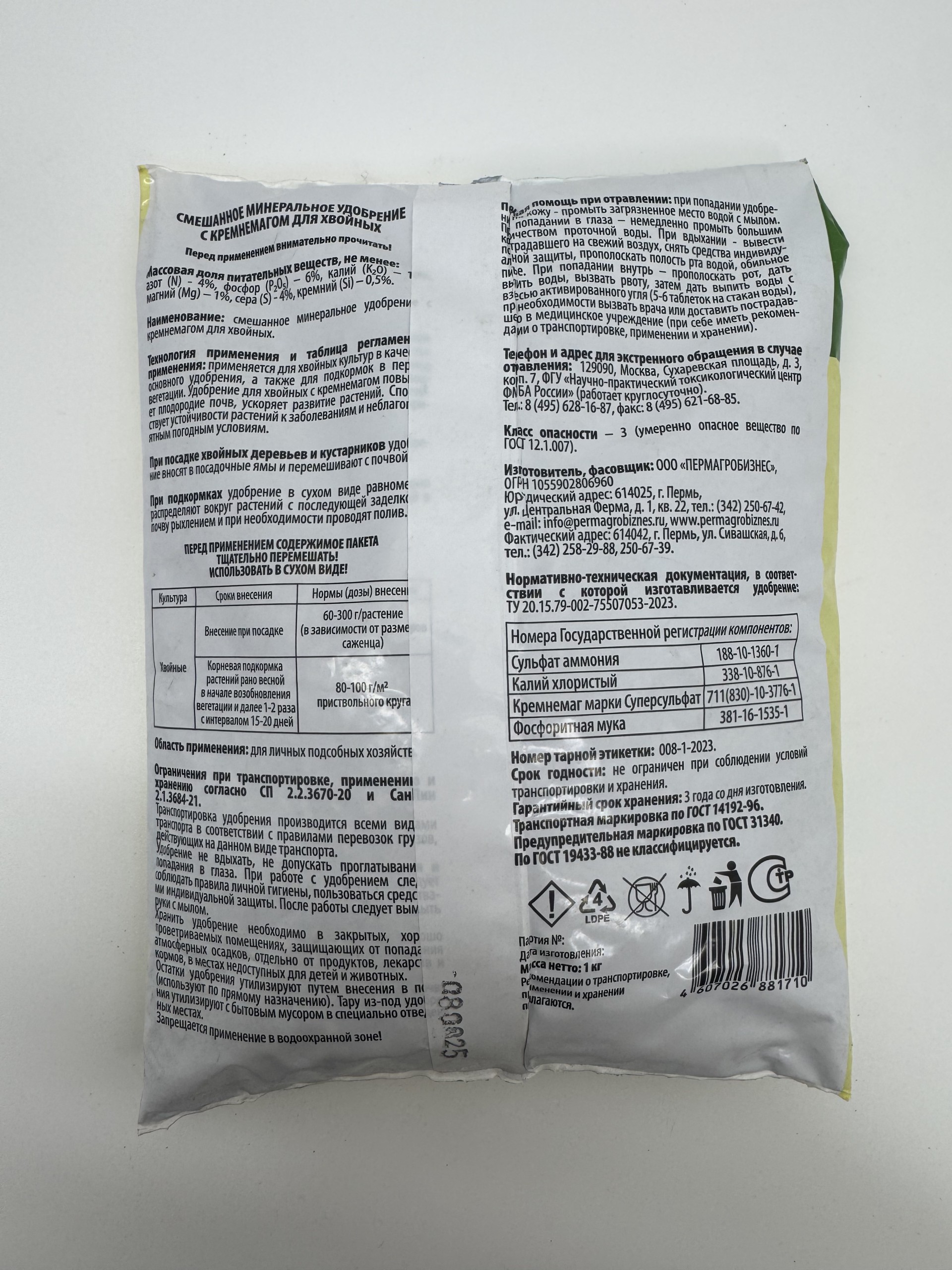 Главная Средства защиты , удобрения, от бытовых вредителей Хвойные с Кремнемагом 1 кг (ПАБ) /10/960