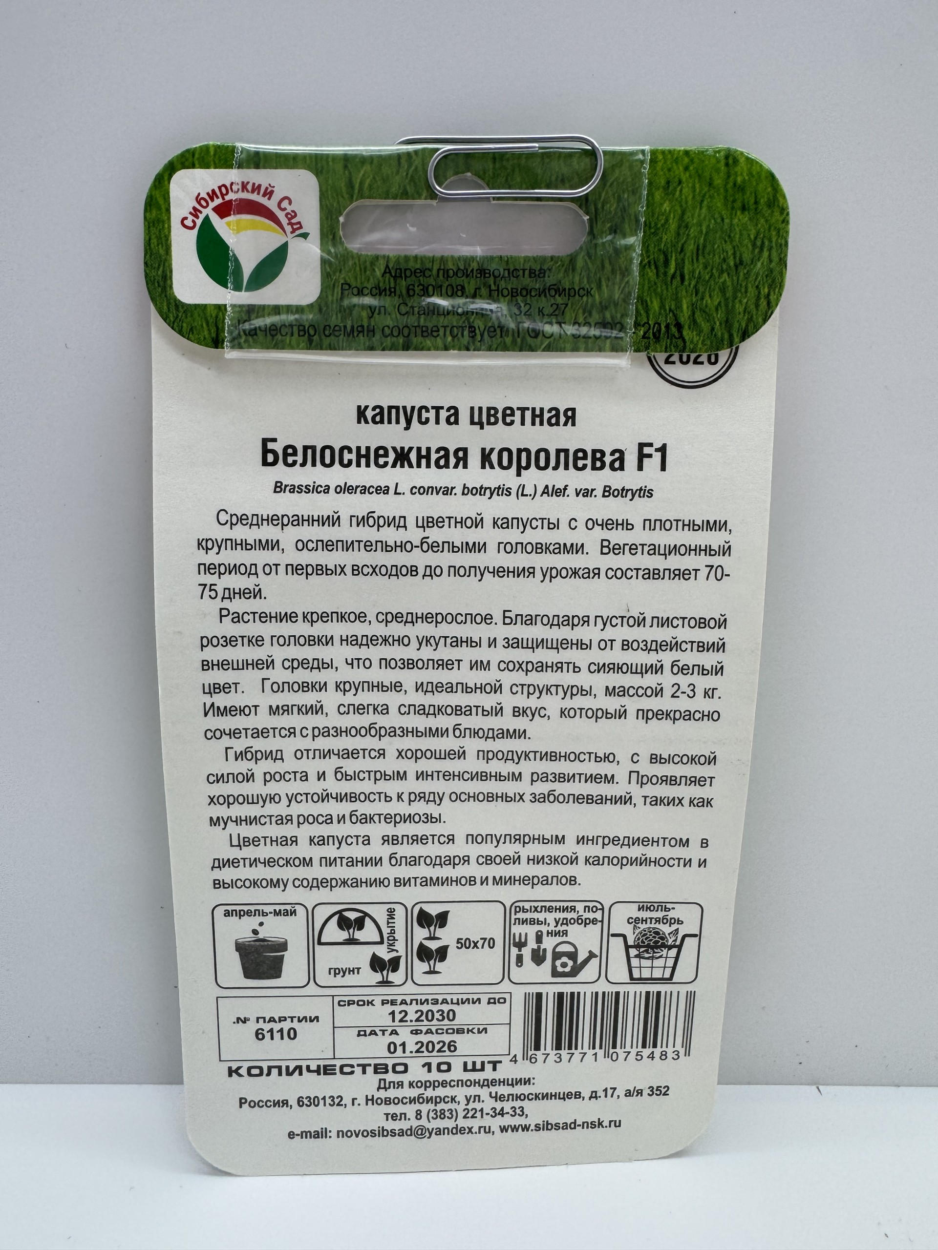 Главная Семена КАПУСТА Капуста цв.Белоснежная королева F1 (Сиб.сад) 10шт