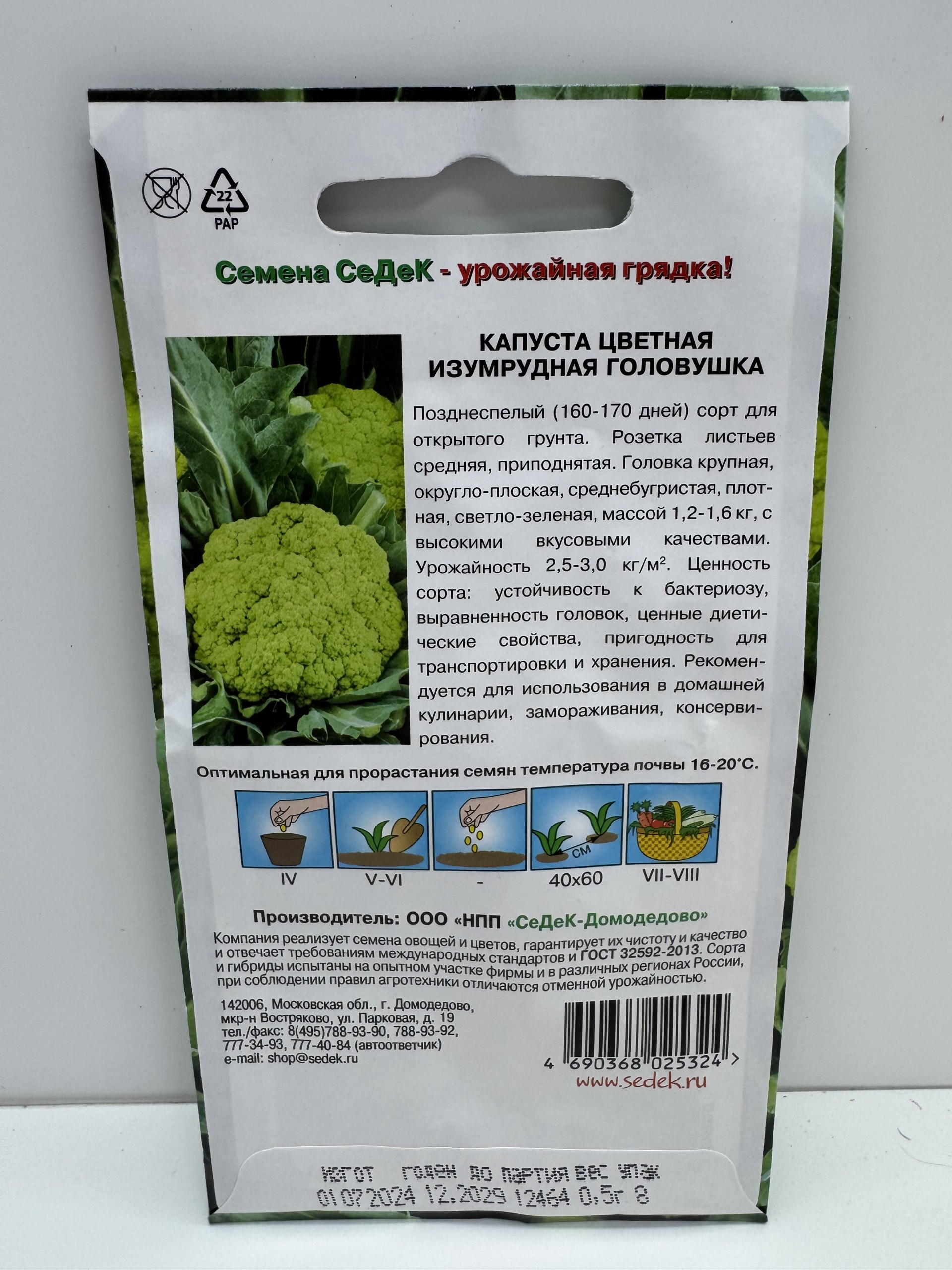 Главная Семена КАПУСТА Капуста цв.Изумрудная головушка F1 (Седек) 0,5г