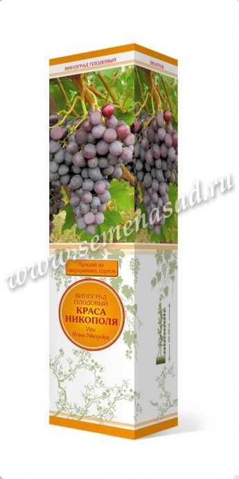 Столовый сорт винограда сверхраннего срока созревания (105 дней). Ягода овальная, средней массой 4-5 г, темно-розовая, при перезревании почти фиолетовая. Мякоть плотная, кожица тонкая, имеет высокое сахаронакопление. Вкус приятный, гармоничный. Грозди средней плотности или рыхлые, конические, средней массой 400-600 г. Сорт Краса Никополя один из лучших среди сверхранних сортов.