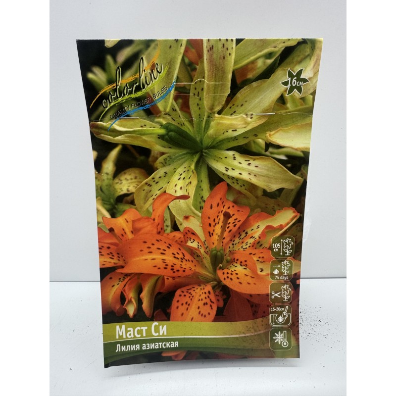 белый с желтоватым центром, оранжевые тычинки очень крупные цветки, H-110см