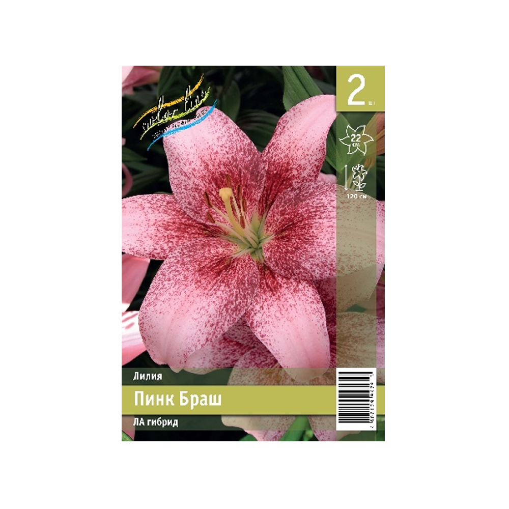 Лилия Pink Brush (Пинк Браш) — устойчивый и неприхотливый LA-гибрид. Цветы крупные до 18 см, розовые, лепестки которых покрыты густым бордовым крапом, который сгущается к центру цветка. Бутоны лилии Pink Brush (Пинк Браш) смотрят вверх. Высота растения до 120 см. Цветение июль-август. Размер луковицы 10/12. Подходит для посадки как в саду, так и дома в контейнерах, обладает приятным, но не слишком интенсивным запахом. Зимостойкость зона 6 (от -23 до -18°C).