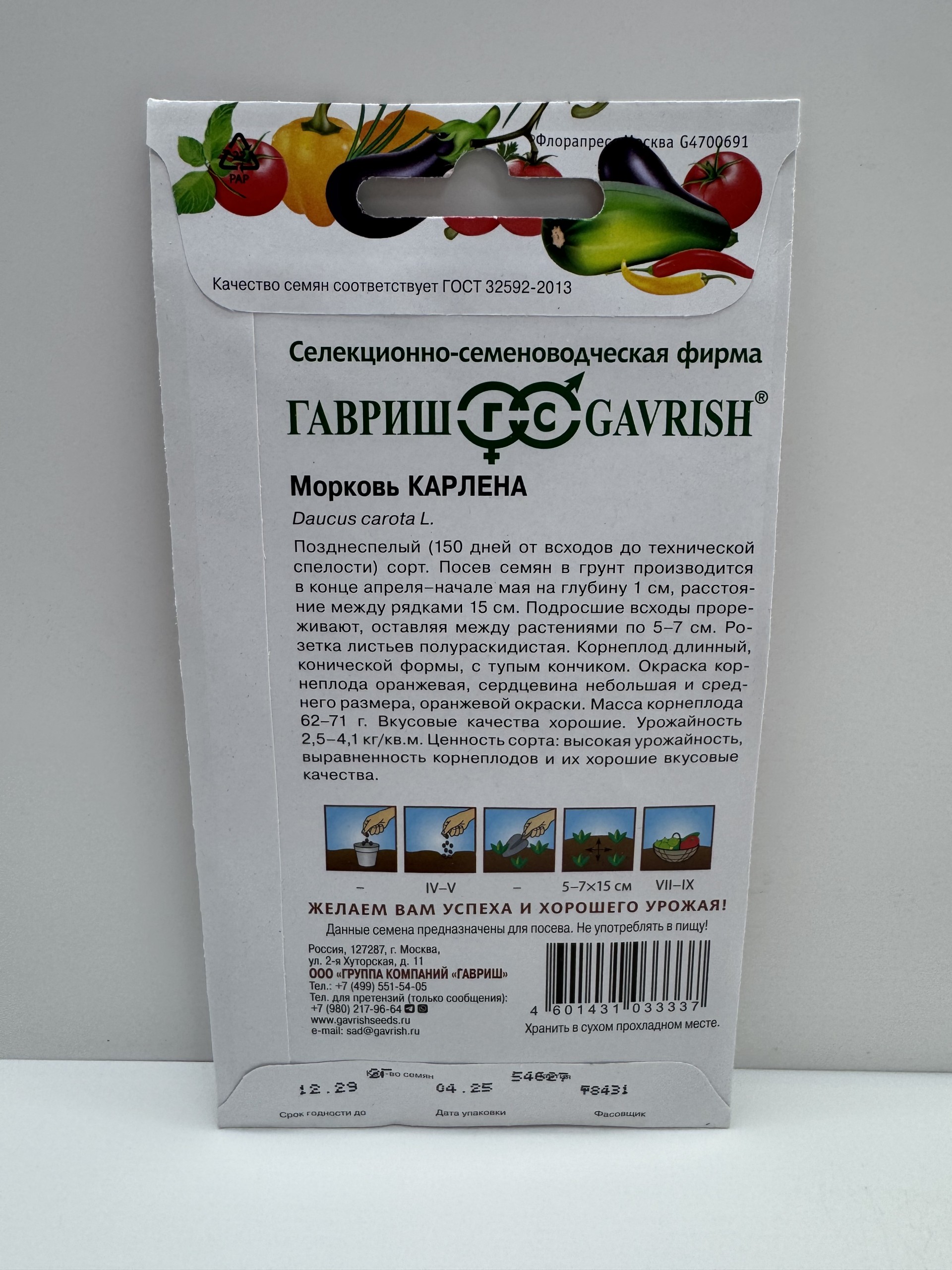 Главная Семена МОРКОВЬ Морковь Карлена (Гавриш) 2г