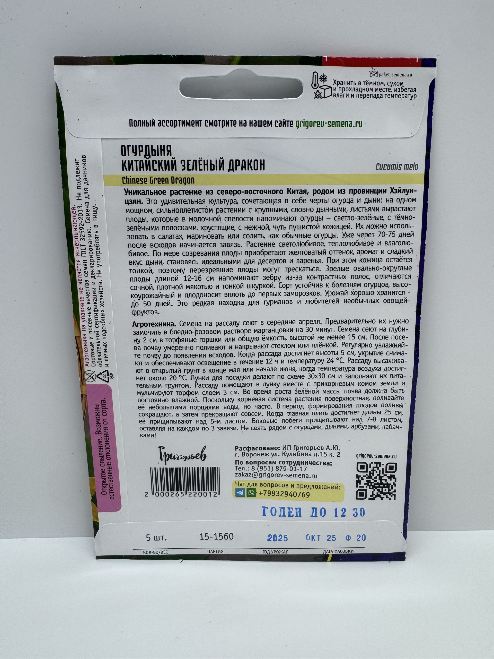 Главная Семена ОГУРЦЫ Огурдыня Китайский зеленый дракон (Григорьев)