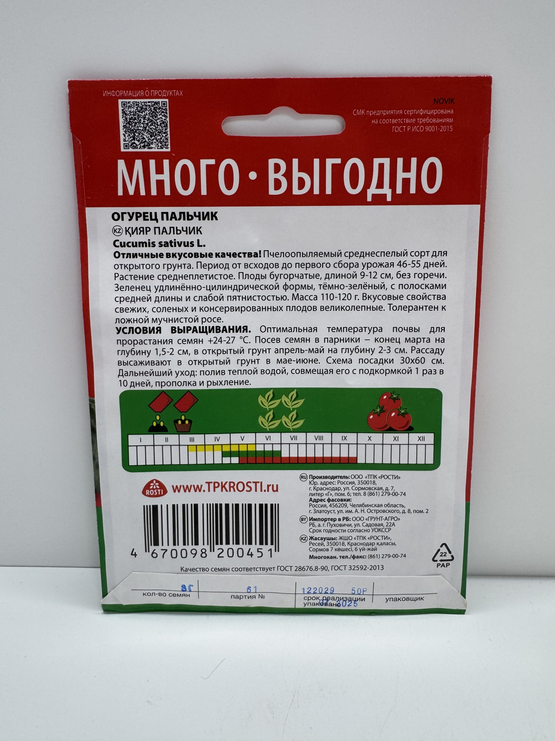 Главная Семена ОГУРЦЫ Огурец Пальчик МНОГО-ВЫГОДНО (Рости) 3 г