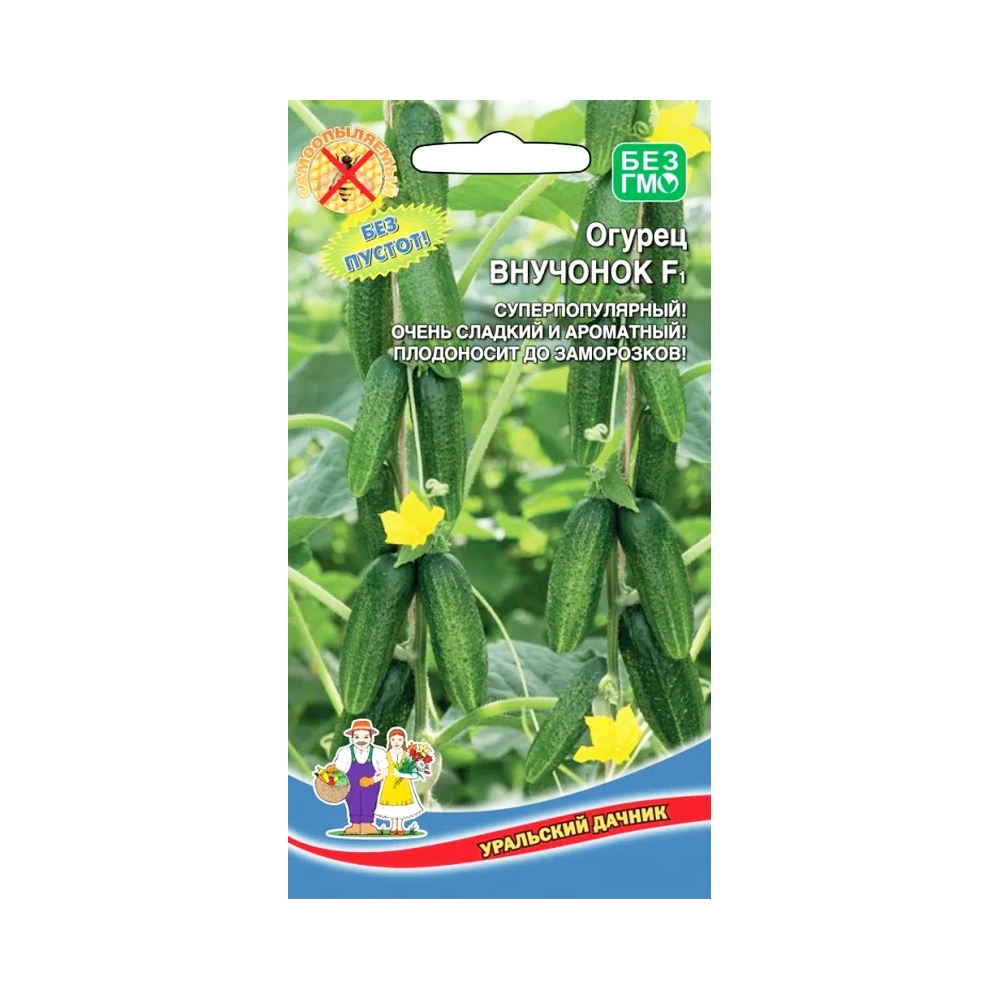Огурец «Внучок F1» это партенокарпический (самоопыляемый) гибрид с ранними сроками созревания. От всходов до появления первых огурчиков 38-42 дня. Преимущества: высокий уровень продуктивности (на 1 м2 приходится почти 20 кг урожая, а в тепличных условиях — до 30 кг!), отличается длительностью плодоношения, обладает крепким иммунитетом ко многим распространенным заболеваниям культуры, устойчивость к перемене температуры воздуха- нетребователен в уходе- отличные вкусовые характеристики, товарный вид и лежкость гибрида- универсальность предназначения огурцов.