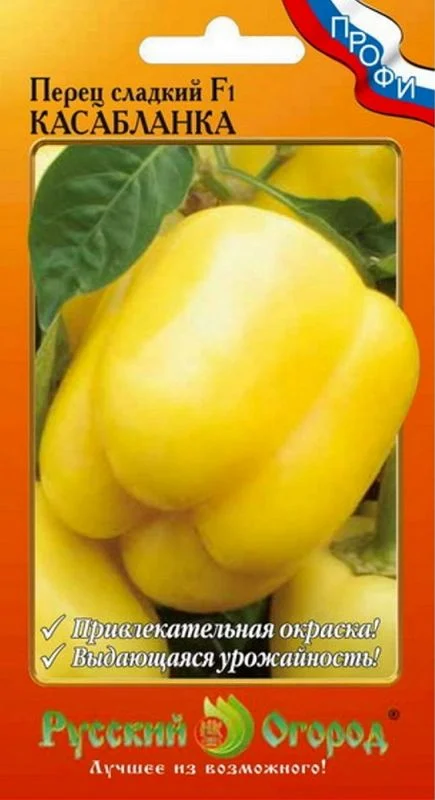 У сладкого перца Касабланка F1 светло-жёлтые, яркие плоды с мясистой толстой стенкой. Растение устойчиво к вирусу табачной мозаики.