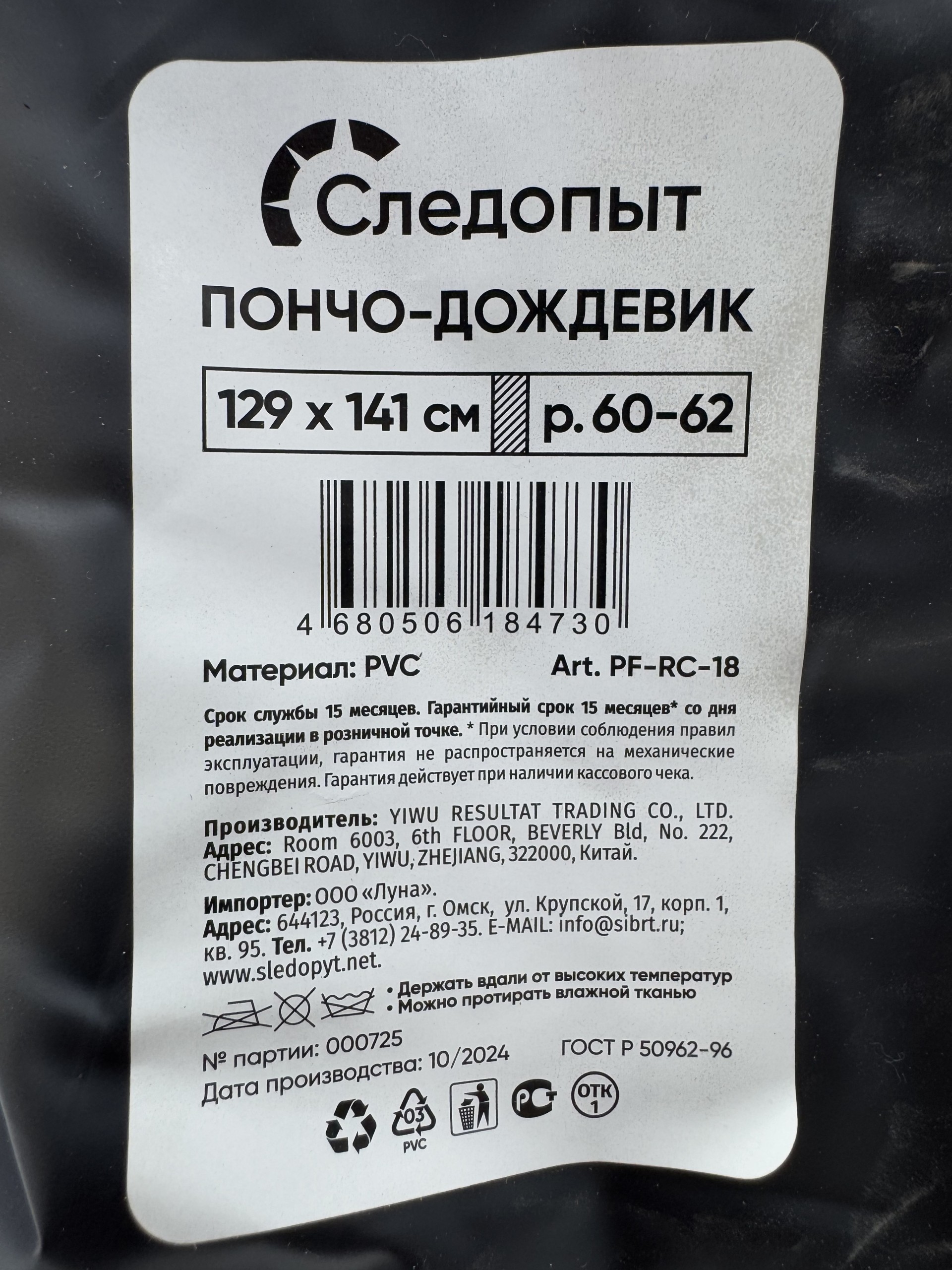 Будьте первым, кто оставил отзыв на “Пончо дождевик СЛЕДОПЫТ плотный PVC, 129х141см, на кнопках, синий (р. 60-62) /50” Отменить ответ