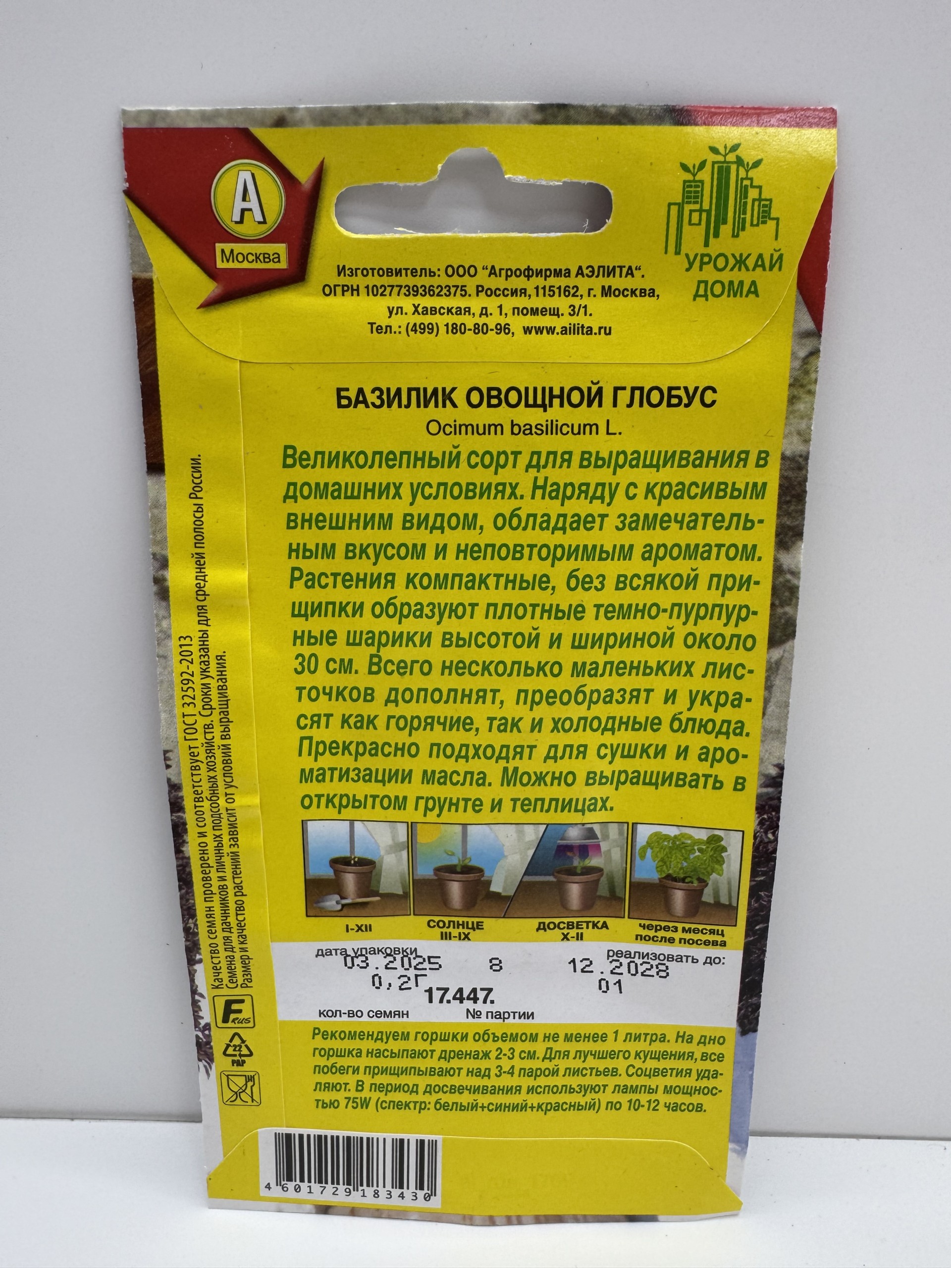 Главная Семена ЗЕЛЕНЫЕ КУЛЬТУРЫ Пр.Базилик Глобус (Аэлита)