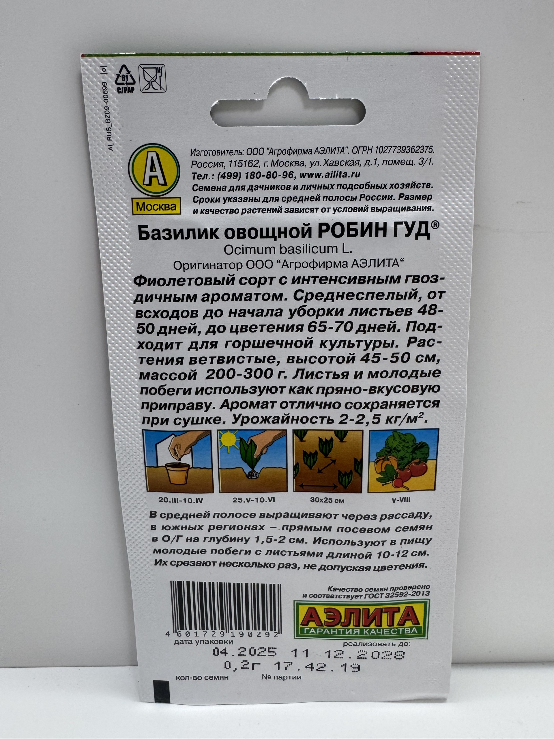 Главная Семена ЗЕЛЕНЫЕ КУЛЬТУРЫ Пр.Базилик Робин Гуд фиолетовый (Аэлита)