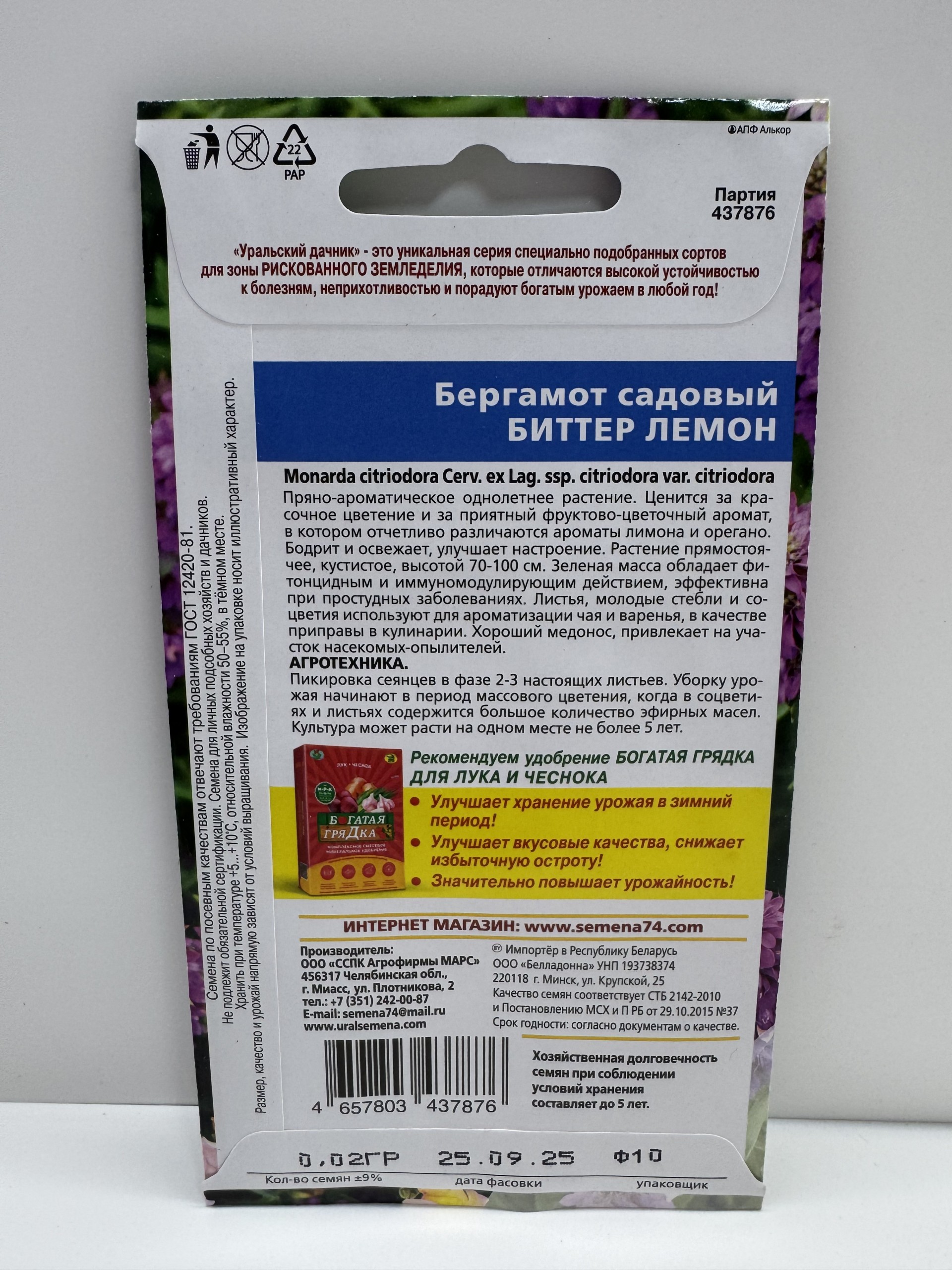 Главная Семена ЗЕЛЕНЫЕ КУЛЬТУРЫ Пр.Бергамот Биттер лемон (УД)