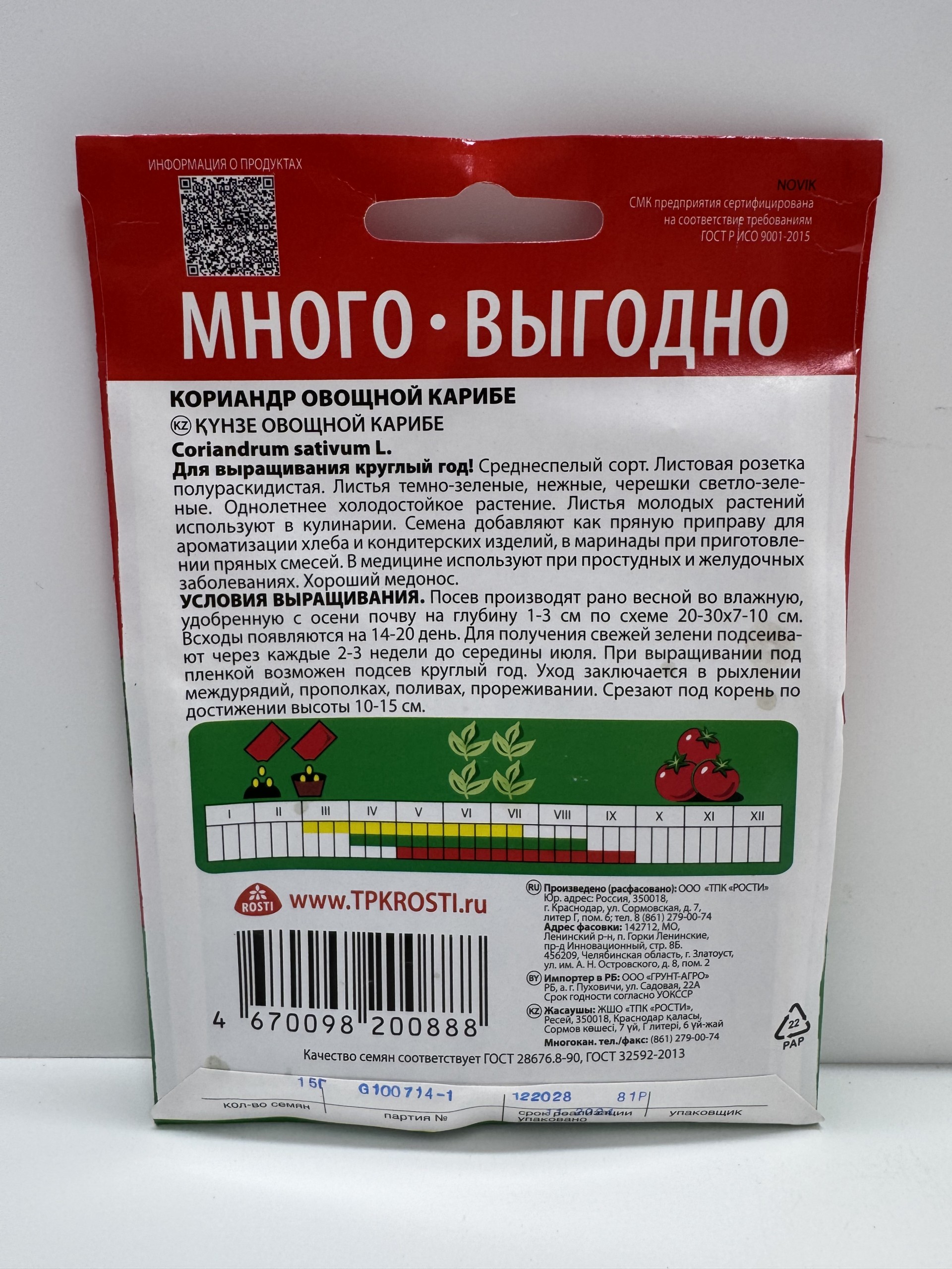 Главная Семена ЗЕЛЕНЫЕ КУЛЬТУРЫ Пр.Кориандр Карибе МНОГО-ВЫГОДНО (Рости) 15 г