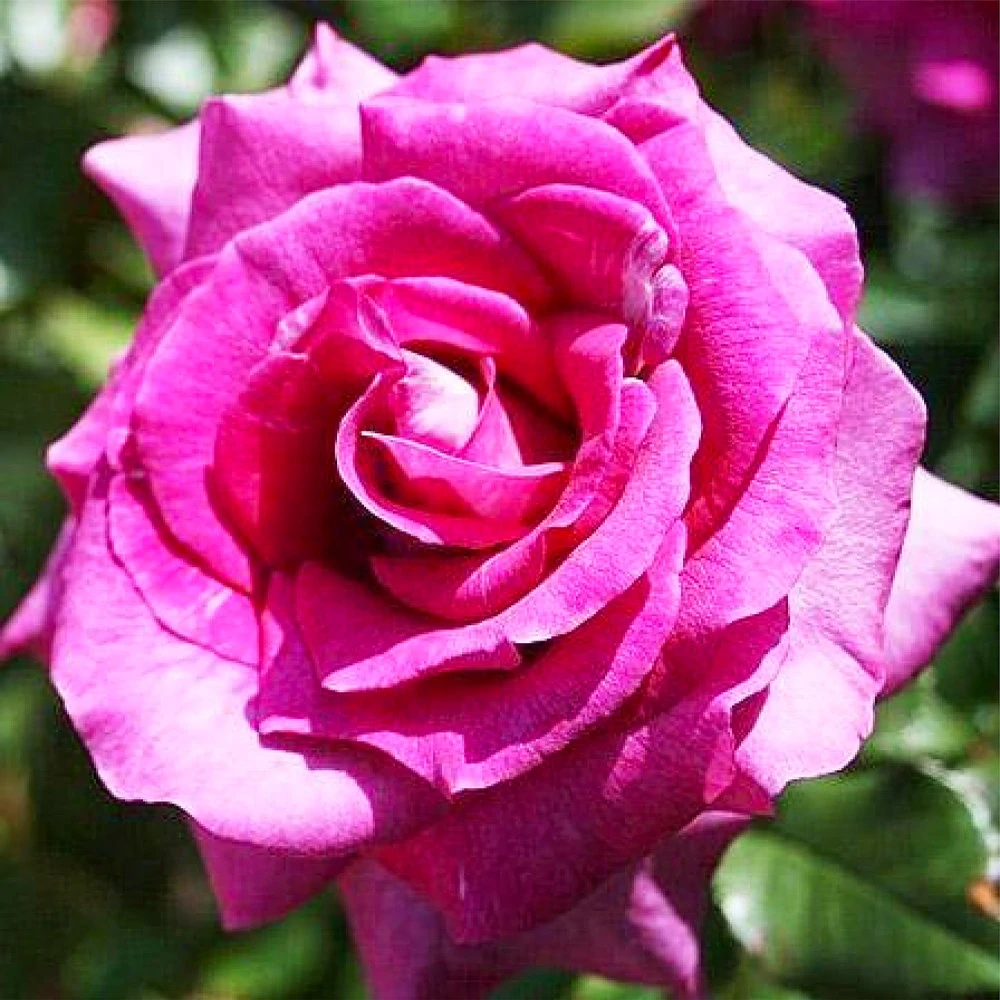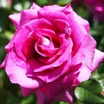 Насыщенная пурпурно-сливовая окраска с серой дымкой, цитрусовый аромат. Цветки очень яркие, даже когда выгорают до маджентовых, густомахровые. У лепестков более светлая изнанка, цветки появляются в крупных кистях, обычно по 5-15 штук, на длинных побегах, хороши для срезки. Листва устойчивая к болезням, темная, блестящая. Цветки вначале бокаловидные, позднее раскрываются в плоские цветки с волнистыми лепестками из 20 штук. Побеги колючие. Сорт хорош для окантовки цветников, на клумбах и бордюрах, контейнерах. Устойчив к жаре и дождю.