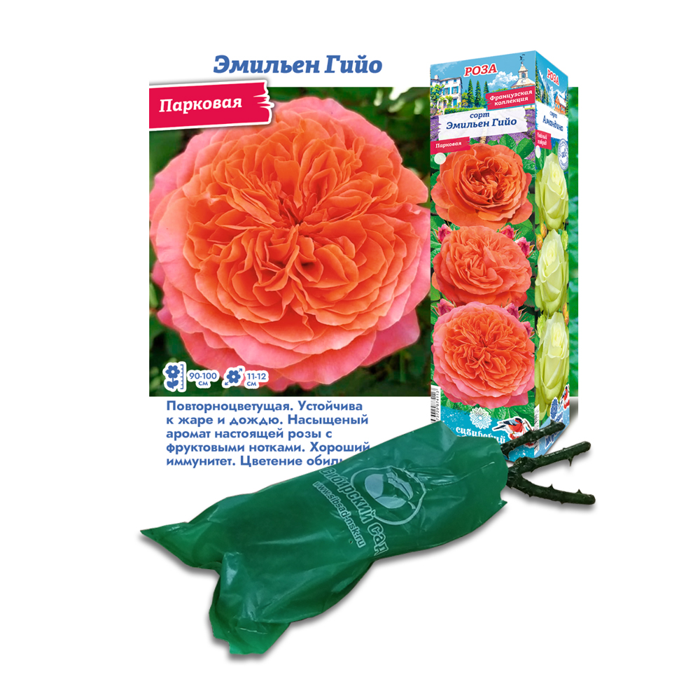 Роза образует хорошо облиственный куст, достигающий в высоту 1 м и в ширину 0,7 м. Сорт относится к кустовым розам. Крупные цветки диаметром до 12 см нечасто встречающегося у роз оранжевого цвета с переходом в алый смотрятся эффектно на фоне густой листвы. В кисти на концах побега может распуститься сразу три цветка, форма цветков – чашеобразная. Цветки в основном единичные, но могут образовывать и кисти. Они показали себя устойчивыми и к жаре, и к дождю. Сорт имеет аромат настоящей розы с фруктовыми нотками.