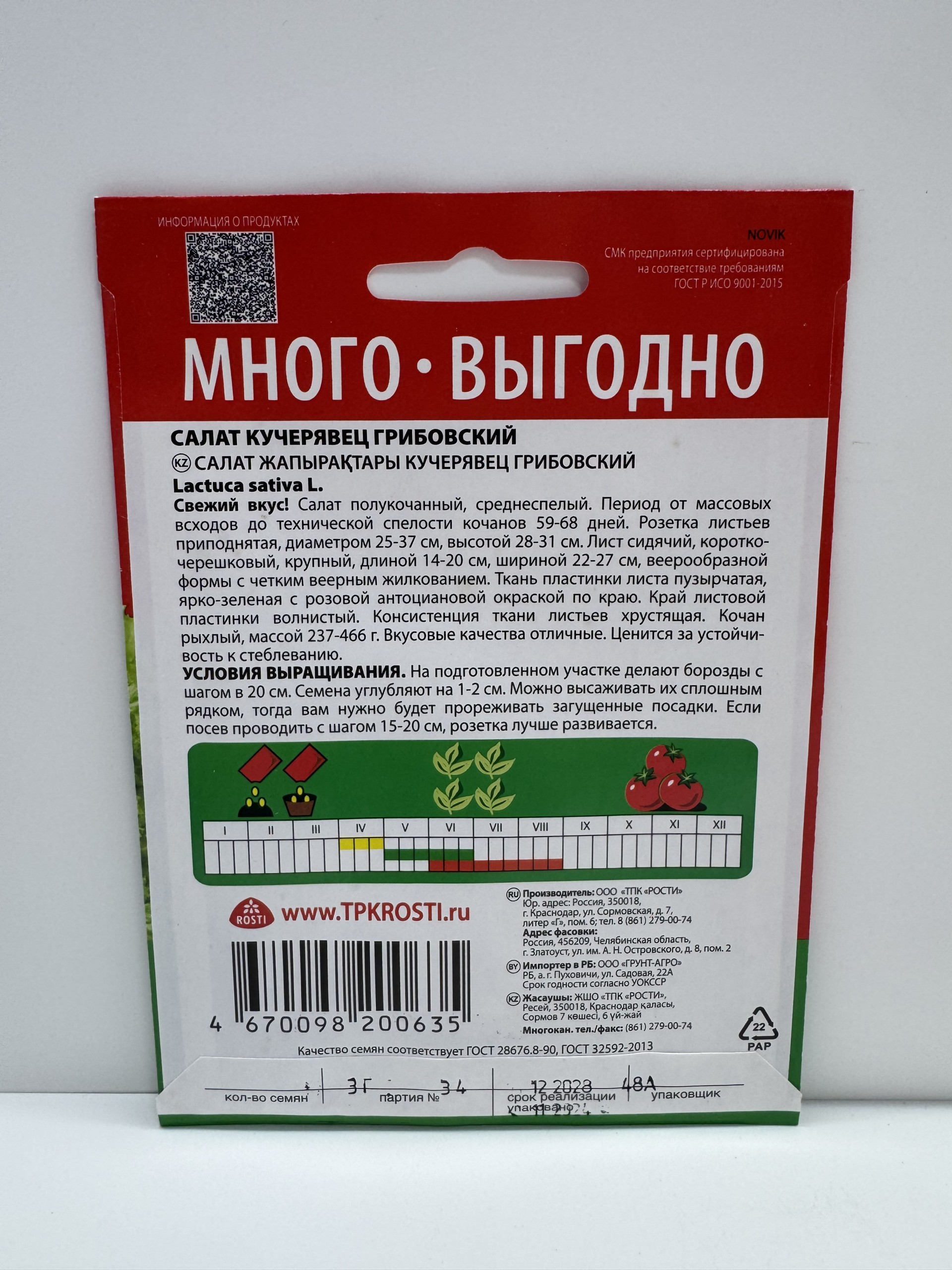 Главная Семена САЛАТ Салат Кучерявец Грибовский МНОГО-ВЫГОДНО (Рости) 3 г