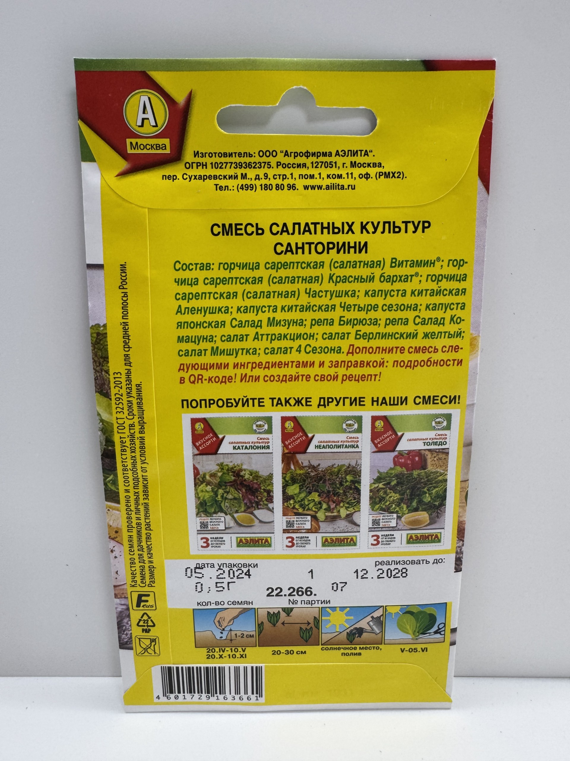 Главная Семена САЛАТ Салат Смесь Санторини (Аэлита) 0,5г