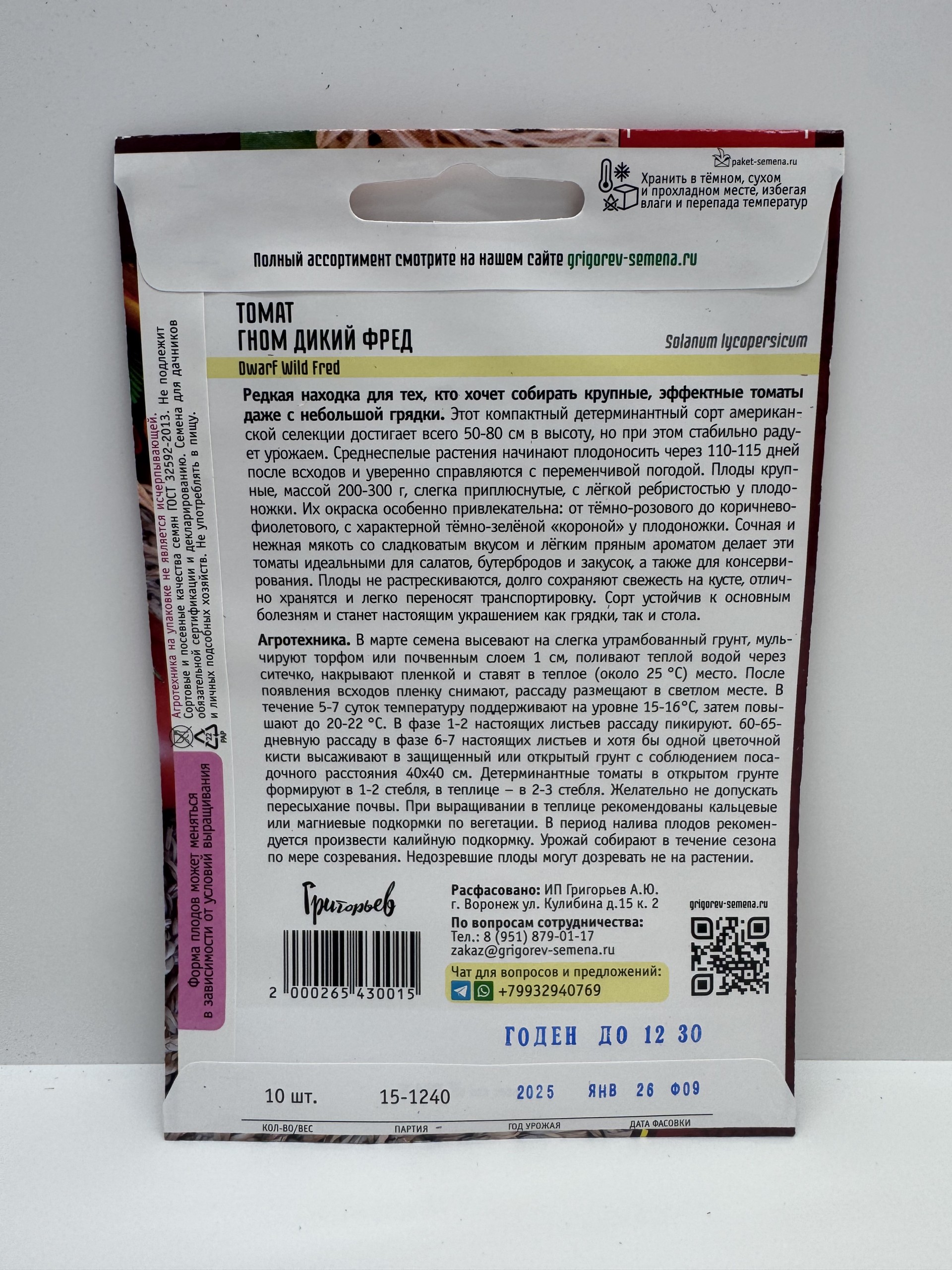 Главная Семена ТОМАТ Томат Гном дикий Фред (Григорьев) 10шт