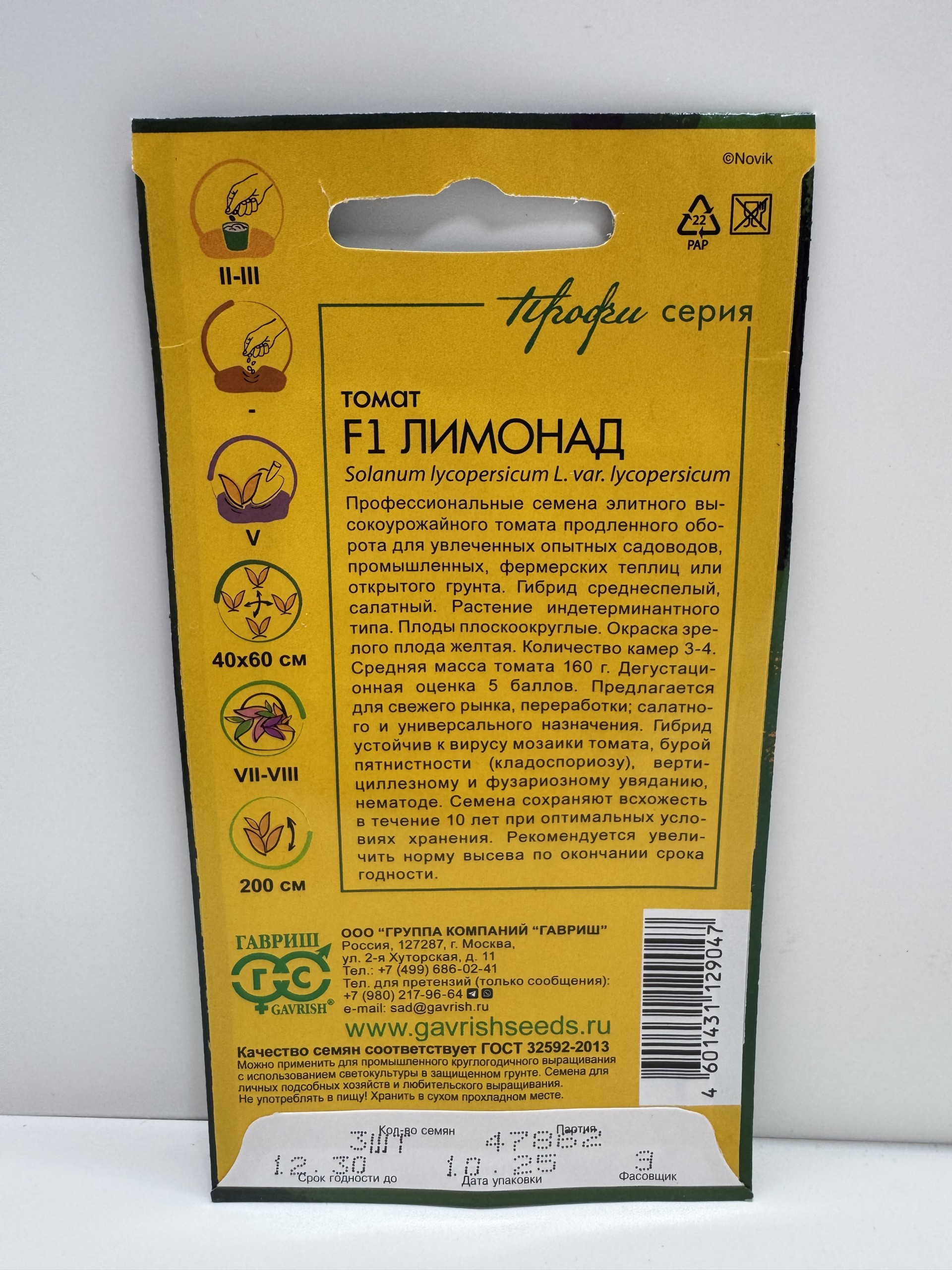 Главная Семена ТОМАТ Томат Лимонад F1 (Гавриш) 3шт