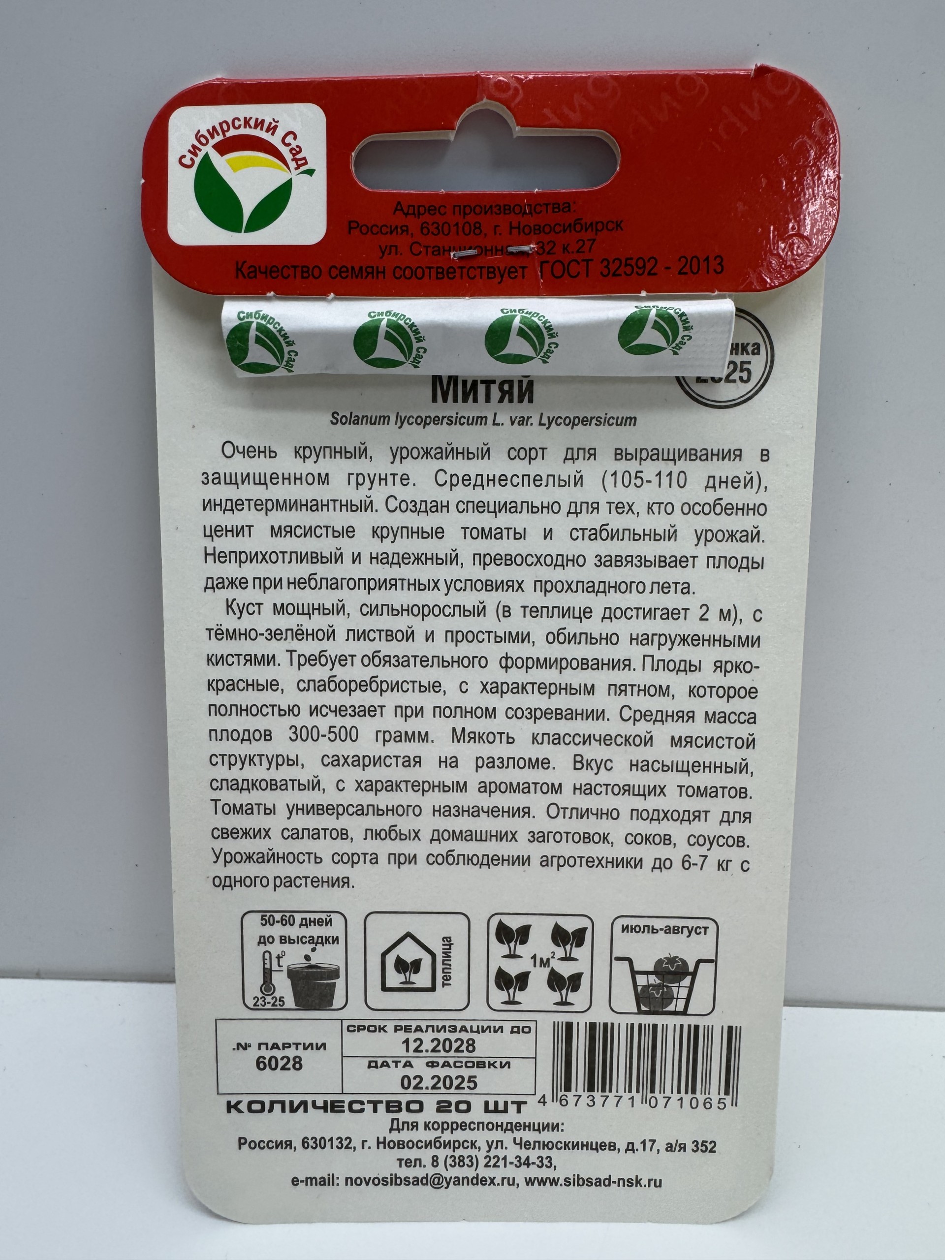 Главная Семена ТОМАТ Томат Митяй (Сиб.сад) 20шт