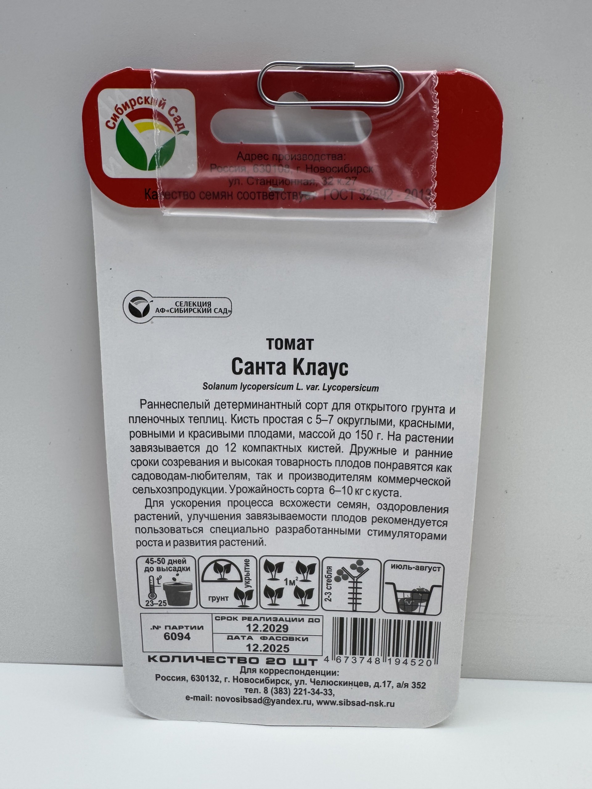 Главная Семена ТОМАТ Томат Санта Клаус (сиб.сад)
