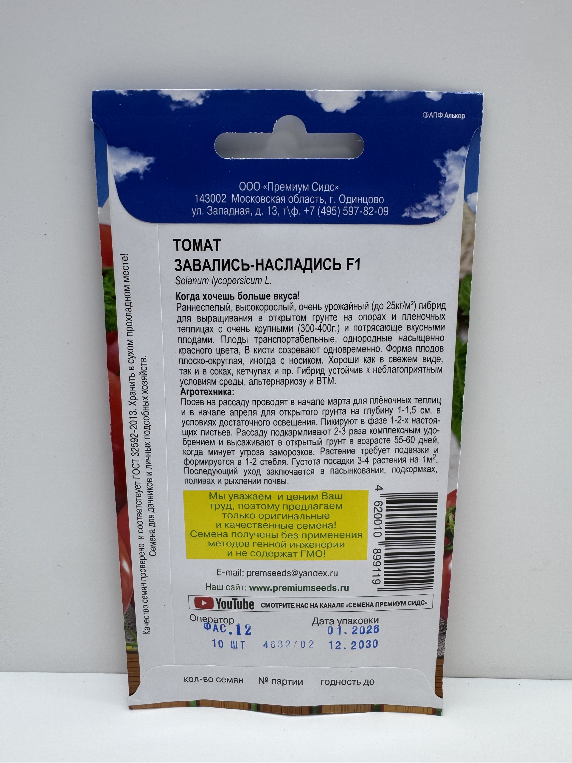 Главная Семена ТОМАТ Томат Завались-насладись F1 (PS) 10шт