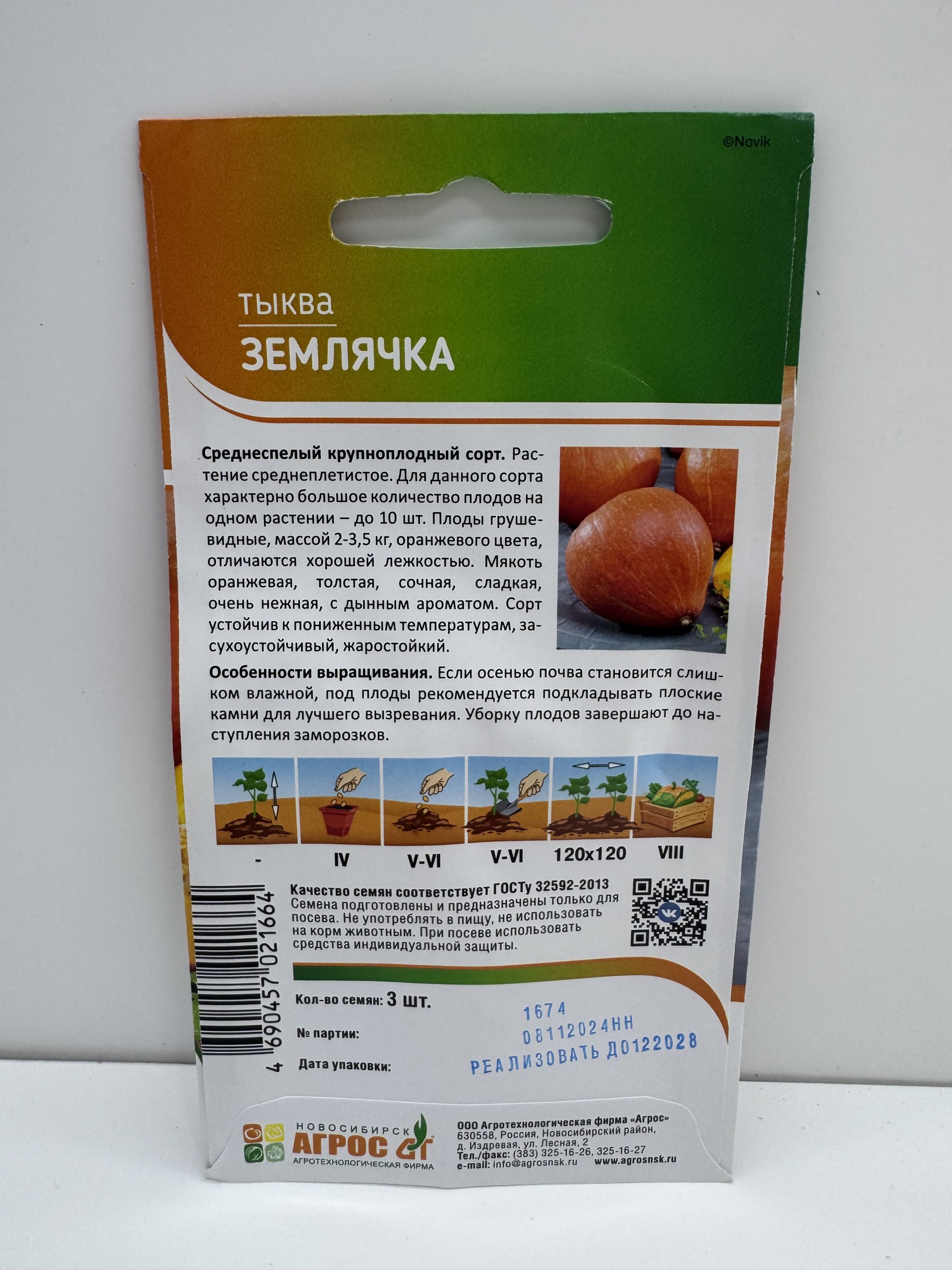 Главная Семена ТЫКВА Тыква Землячка (Агрос) 3шт