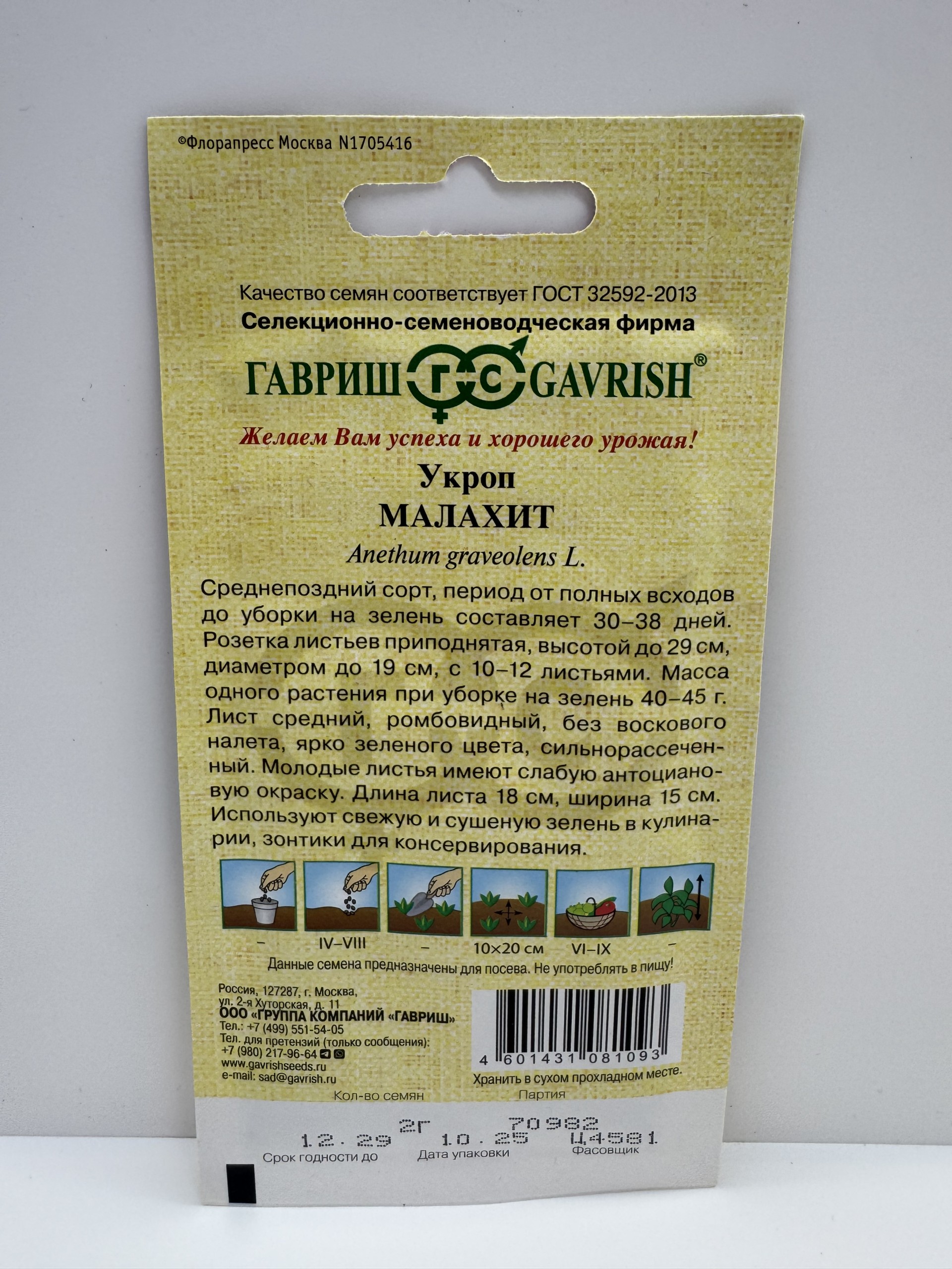 Главная Семена ЗЕЛЕНЫЕ КУЛЬТУРЫ Укроп Малахит (Гавриш) 2г