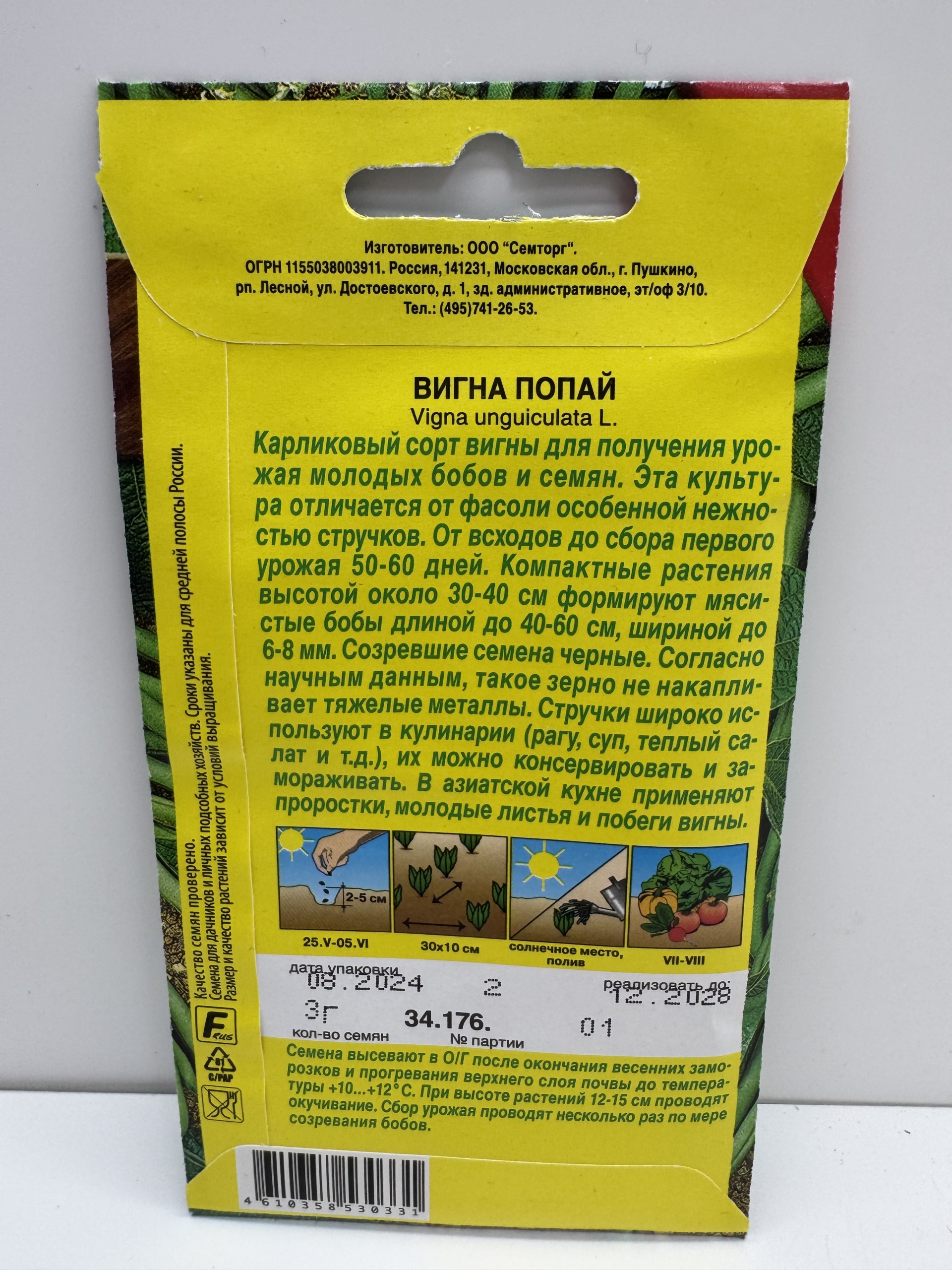 Главная Семена БОБОВЫЕ Вигна Попай (Аэлита) 3г