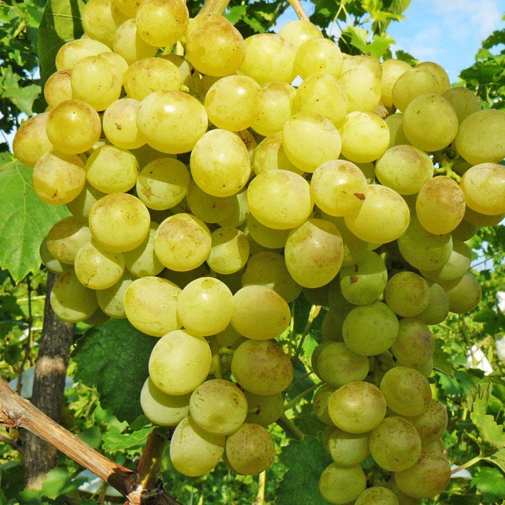 Столовый сорт винограда с повышенной устойчивостью к болезням и морозу. Средне-сильнорослый. Грозди конические, иногда бесформенные, крупные и очень крупные масса грозди 600-700 грамм, умеренно-плотные. Ягоды винограда крупные, 27×24 мм, 6-7 г слегка овальные, белые, с загаром на солнце, приятного вкуса, с большим содержанием сахара. Мякоть хрустящая, гармоничного вкуса, кожица ягод умеренно-плотная, съедаемая.